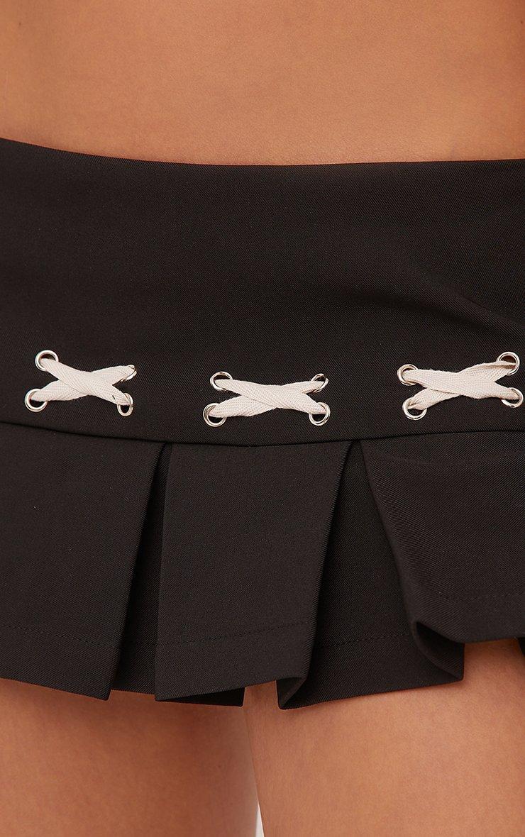Low Rise Cross Detail Pleated Micro Mini Skirt In Black Woven