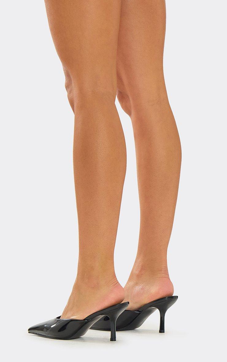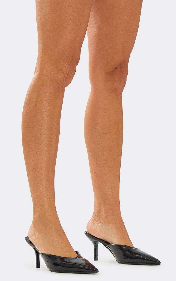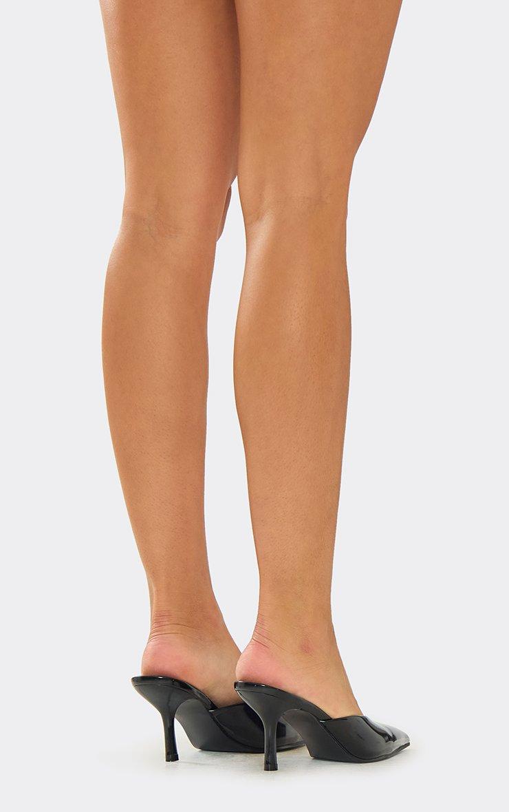 Nils Pointed Toe Stiletto Heel Mule In Black Patent