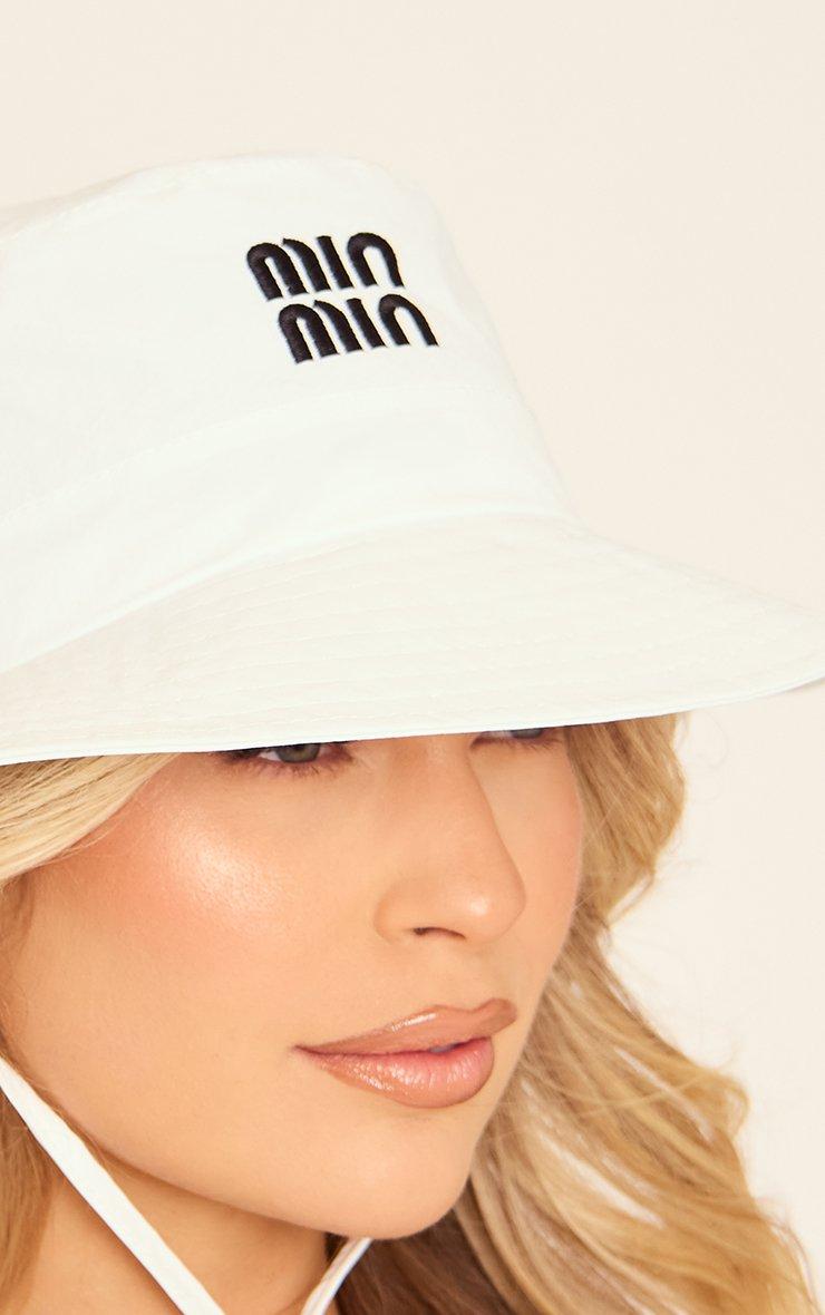 Logo Detail Drawstring Bucket Hat In White