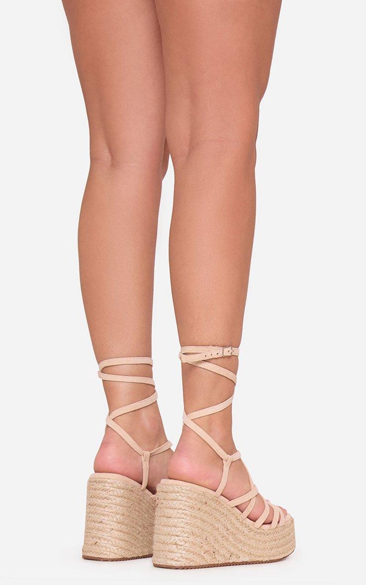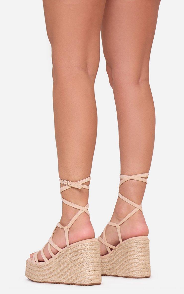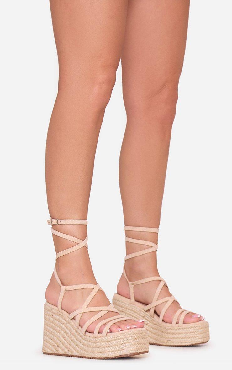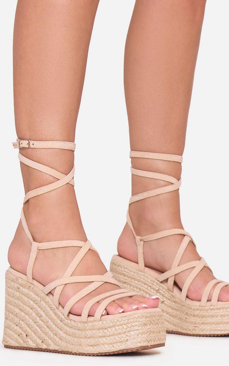 Mura Strappy Woven Platform Wedge Heel In Nude Faux Suede