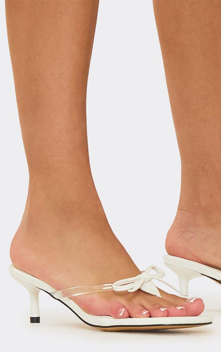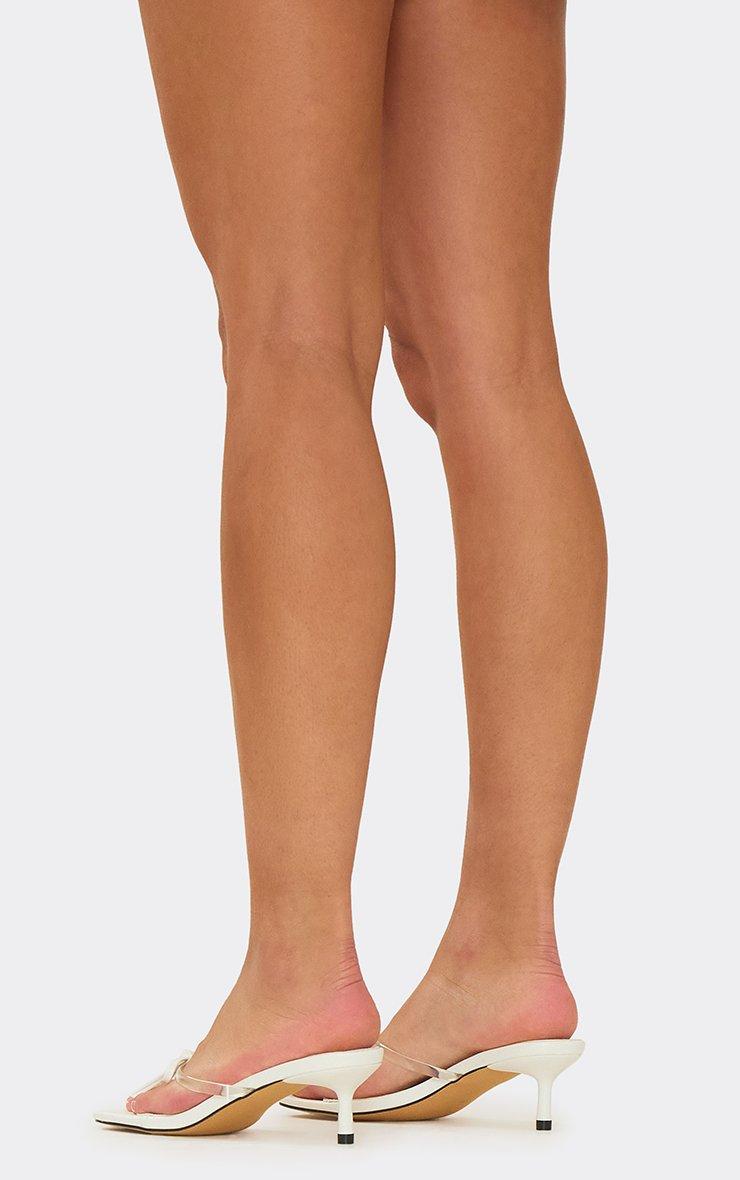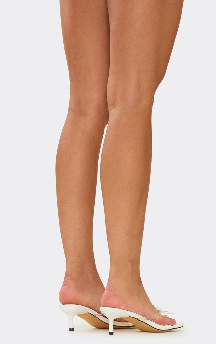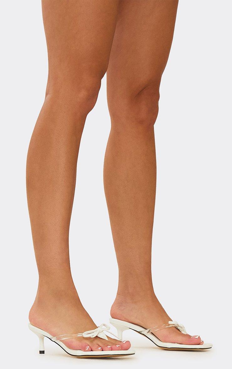 Aneli Bow Detail Clear Perspex Thong Strap Kitten Heel Mule In White Faux Leather