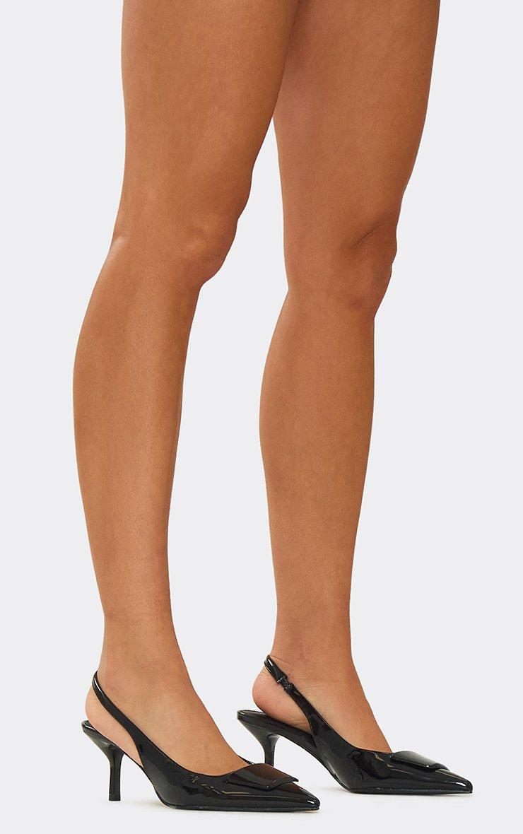 Kofi Pointed Toe Slingback Court Heel In Black Patent
