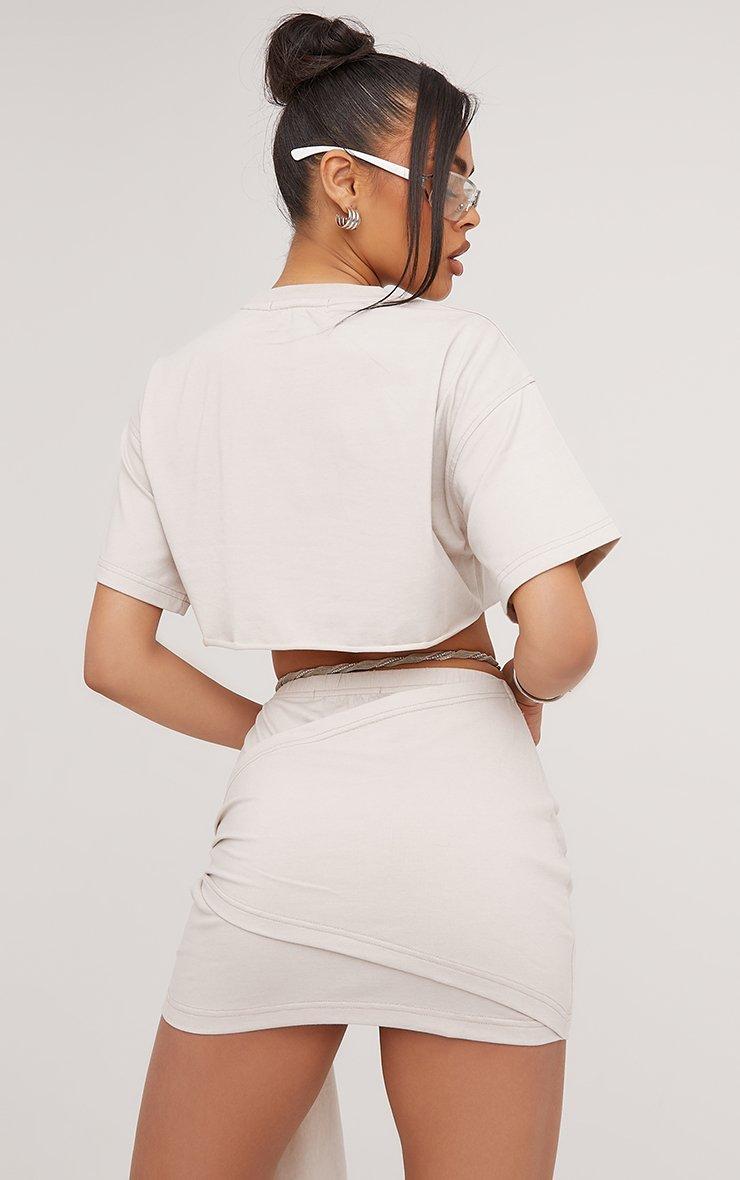 High Waist Tie Side Detail Graphic Print Wrap Mini Skirt In Stone