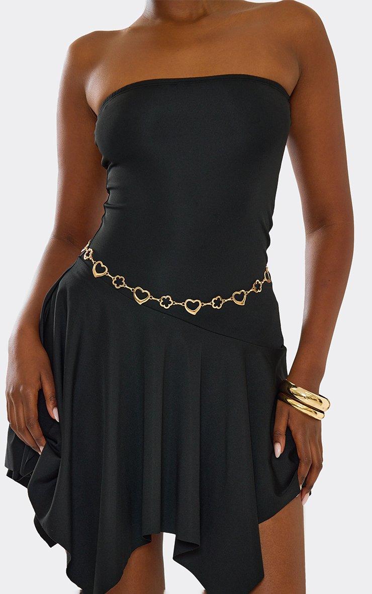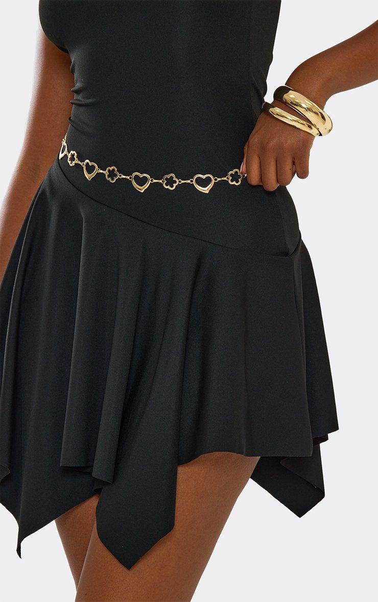 Cut Out Heart Flower Detail Chain Belt In Gold