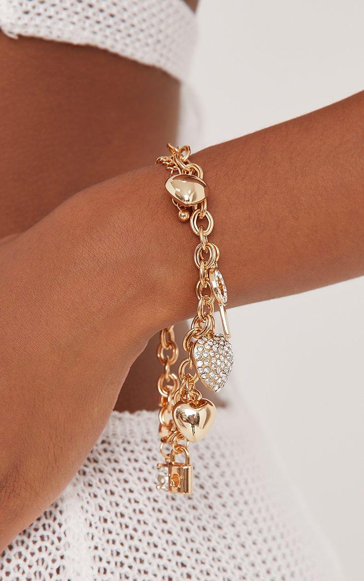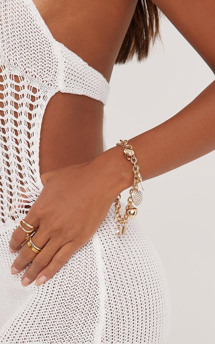 Diamante Detail Charm Bracelet In Gold