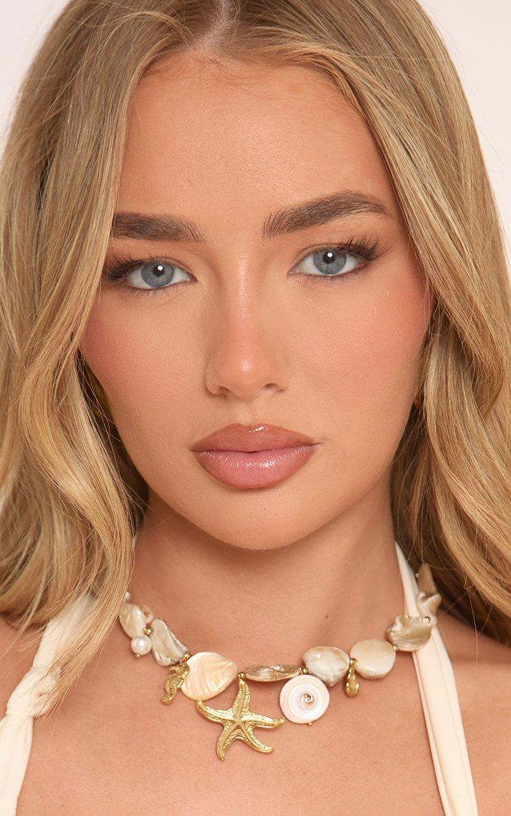Starfish Drop Charm Detail Stone Necklace In Gold And Beige