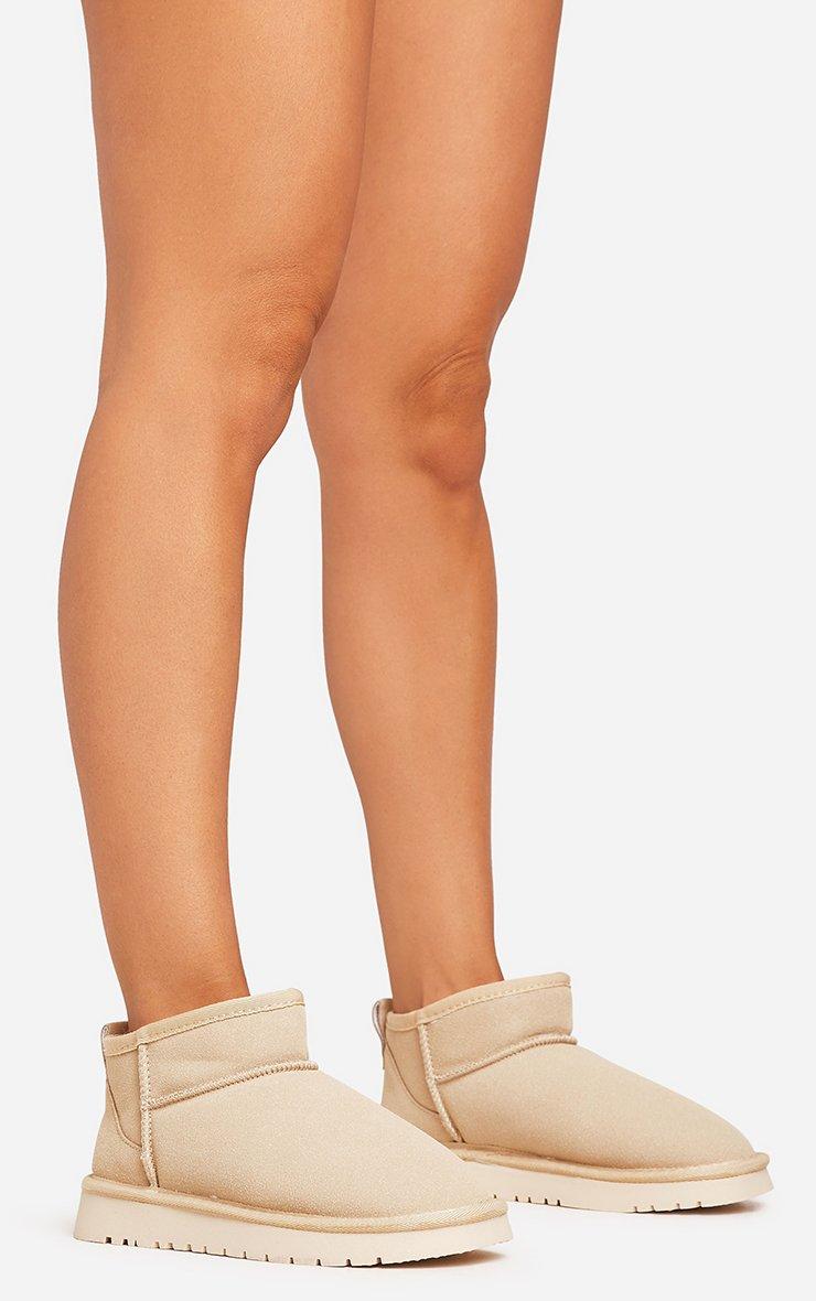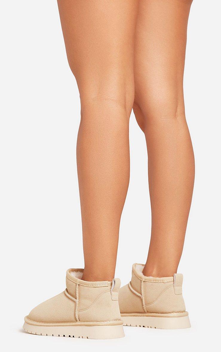 Ultra Mini Ankle Length Faux Fur Lining Boots In Beige Faux Suede