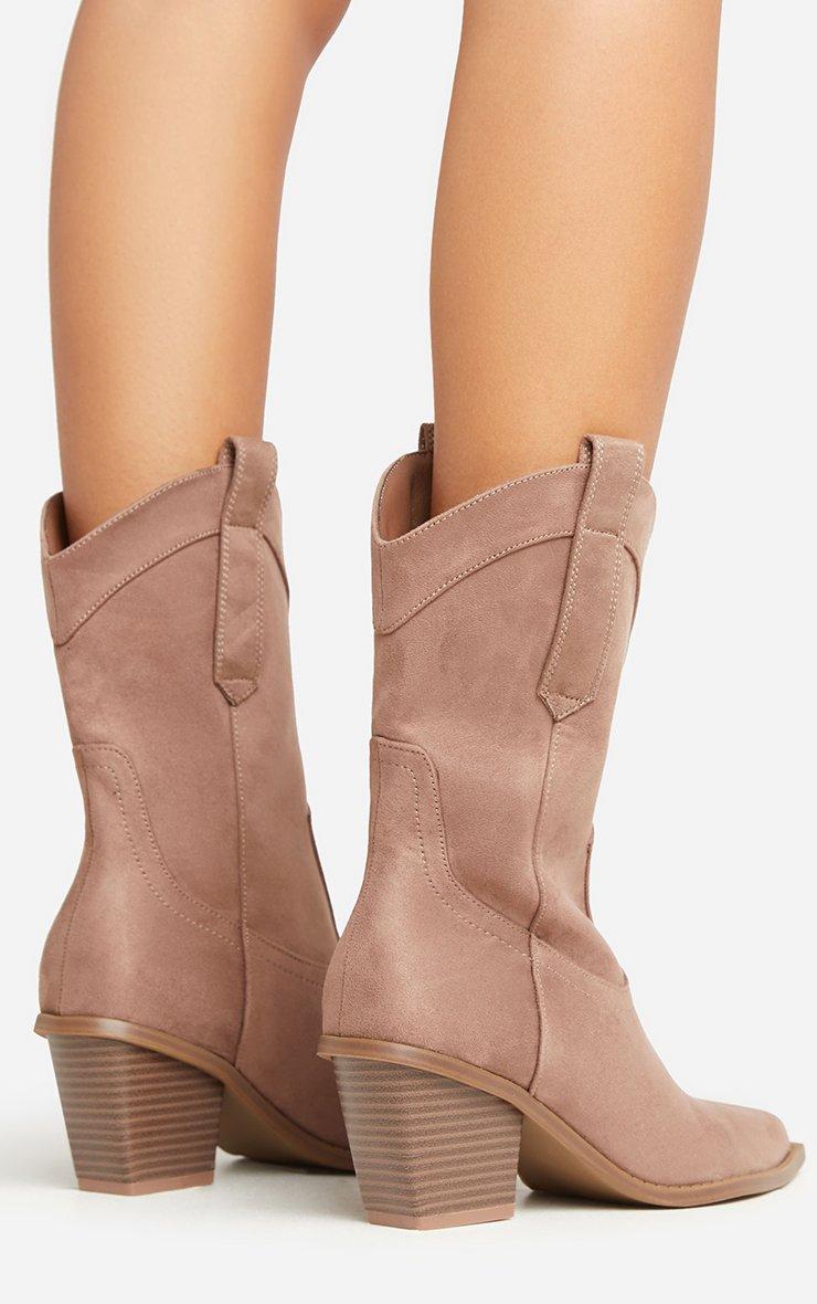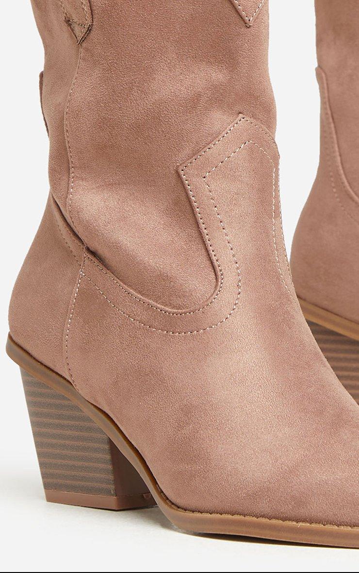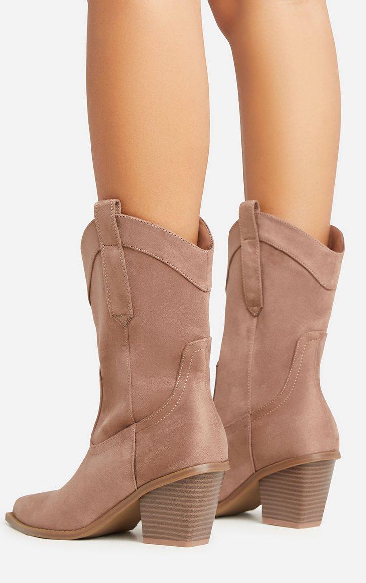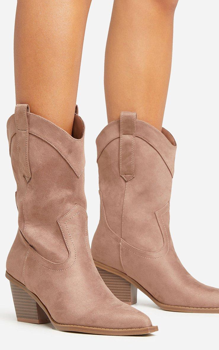 Take your 'Jeans and a nice top' look to a whole new level doll. Featuring a taupe faux suede material, a western style, pointed toe, a block heel and an ankle length.