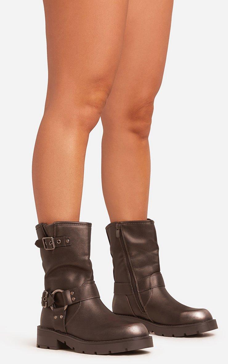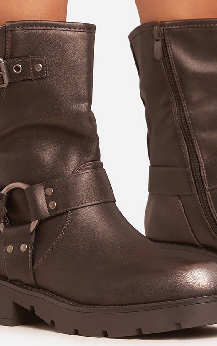 Brooks Buckle Ring Detail Ankle Biker Boot In Grey Faux Leather
