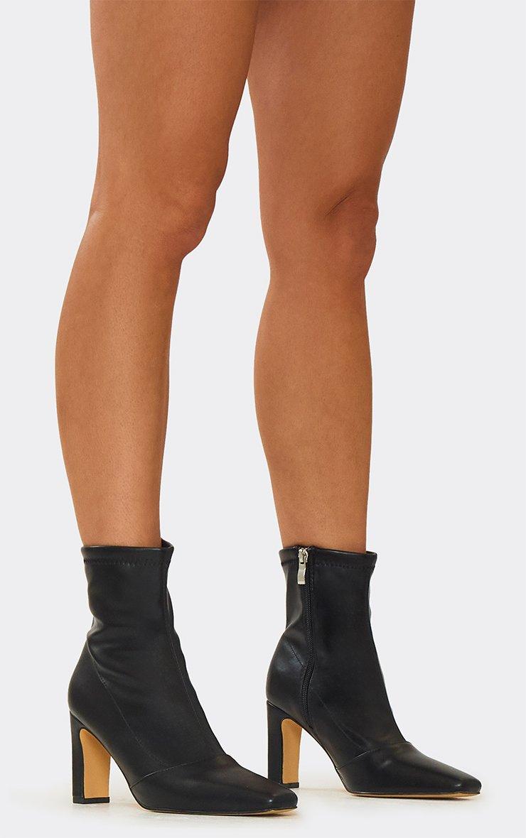 Ryan Pointed Toe Block Heel Ankle Sock Boot In Black Faux Leather
