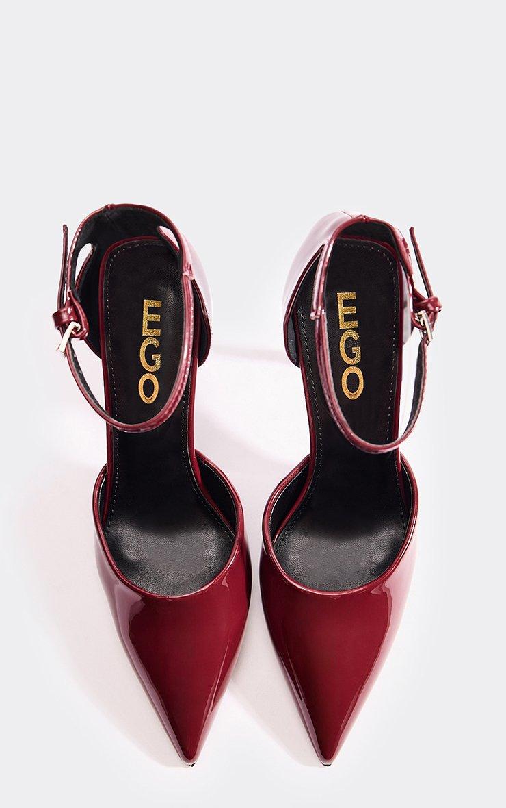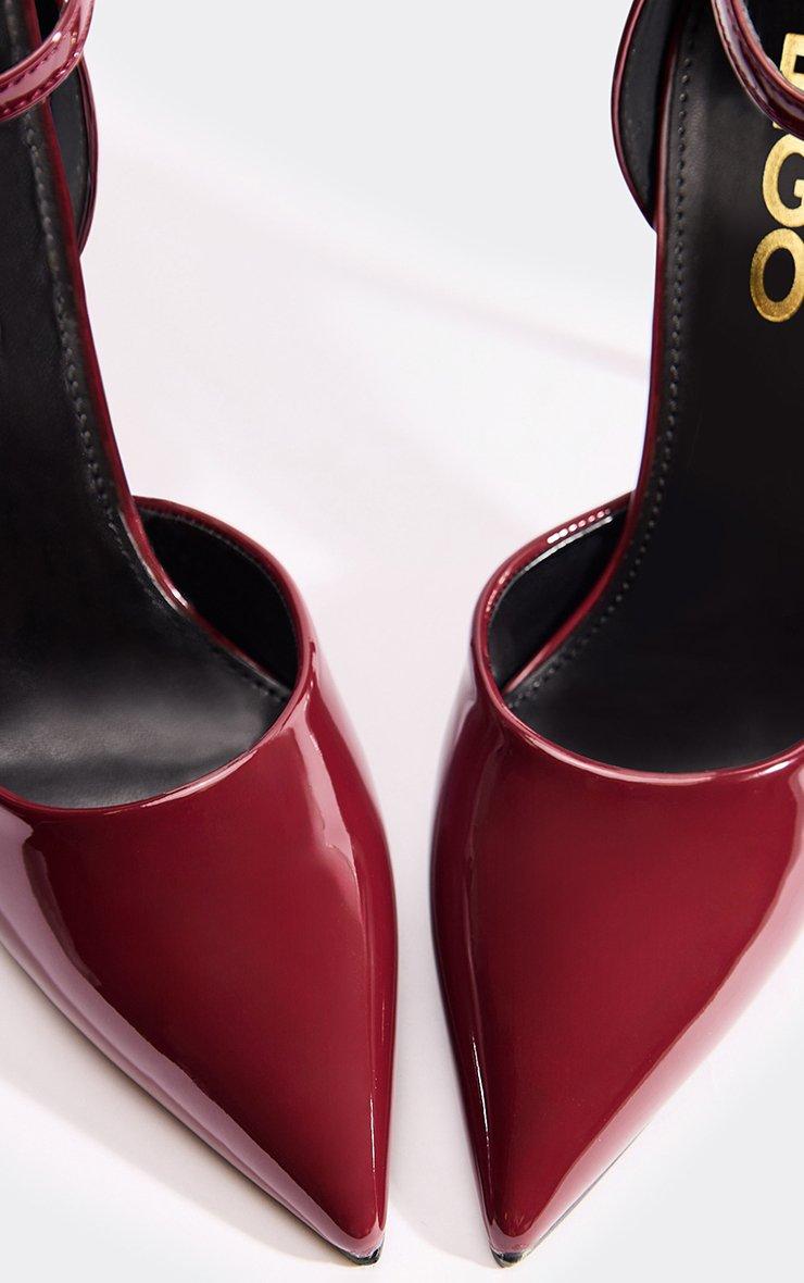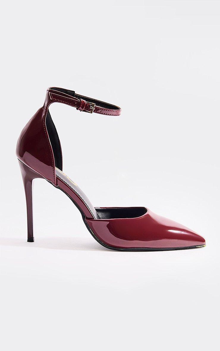 Weekly Ankle Strap Pointed Toe Stiletto Heel In Burgundy Patent