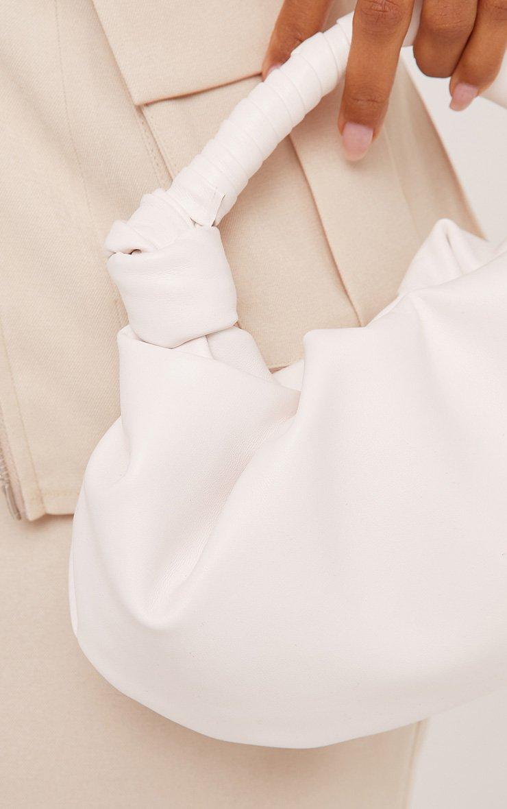 Evelyn Knotted Strap Ruched Detail Grab Bag In Cream Faux Leather