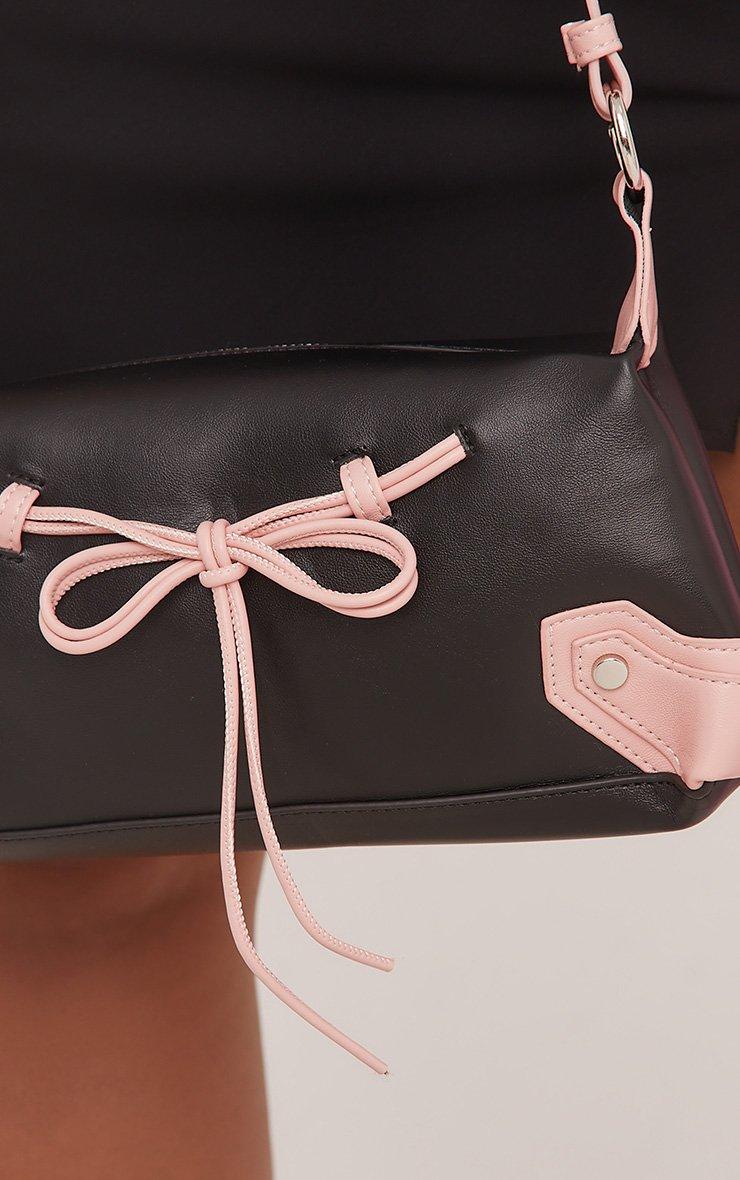 Pierre Contrast Bow Detail Shoulder Bag In Black Faux Leather
