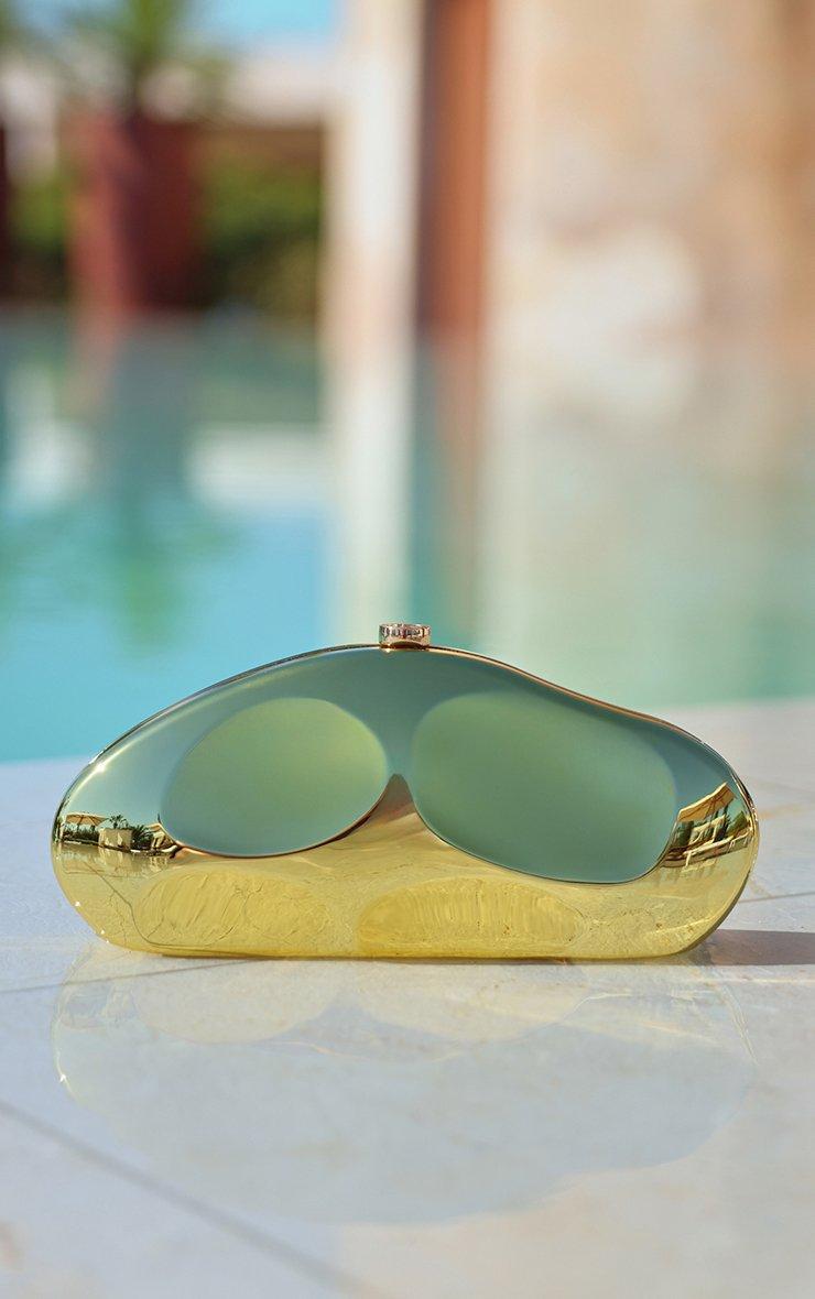 Symphony Textured Detail Shaped Clutch Bag In Gold Patent