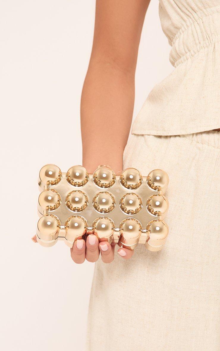 Cordella Bubble Detail Regtangle Shaped Clutch Bag In Champagne