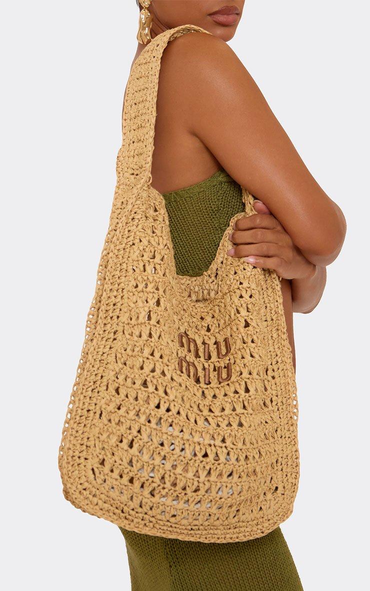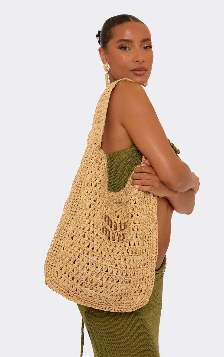 Lang Logo Detail Oversized Beach Bag In Beige Woven