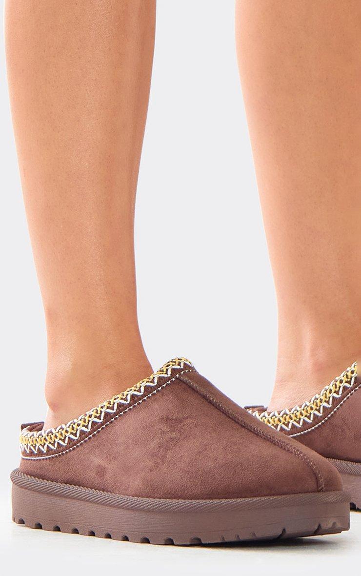 Catch-Up Aztex Trim Faux Fur Lining Slipper In Brown Faux Suede
