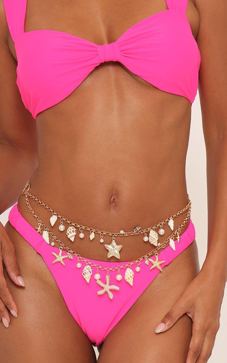 Starfish Shell Detail Double Chain Belt In Gold