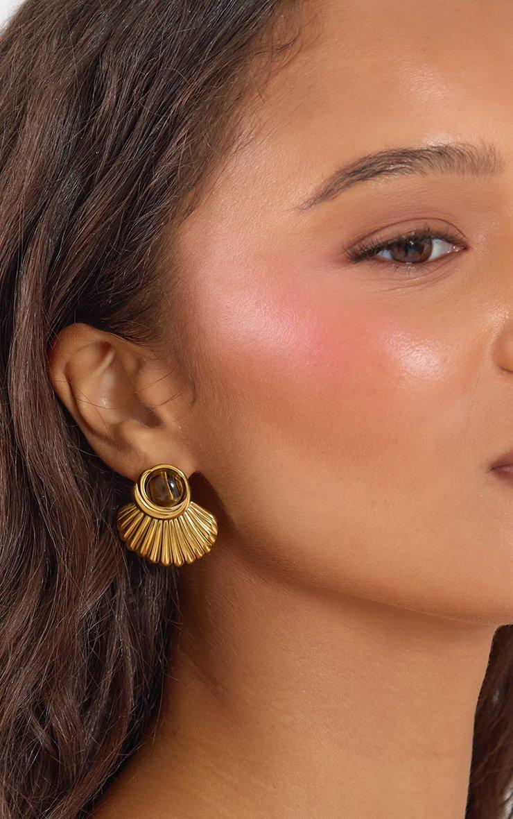 Drop Stud Fan Earrings In Gold