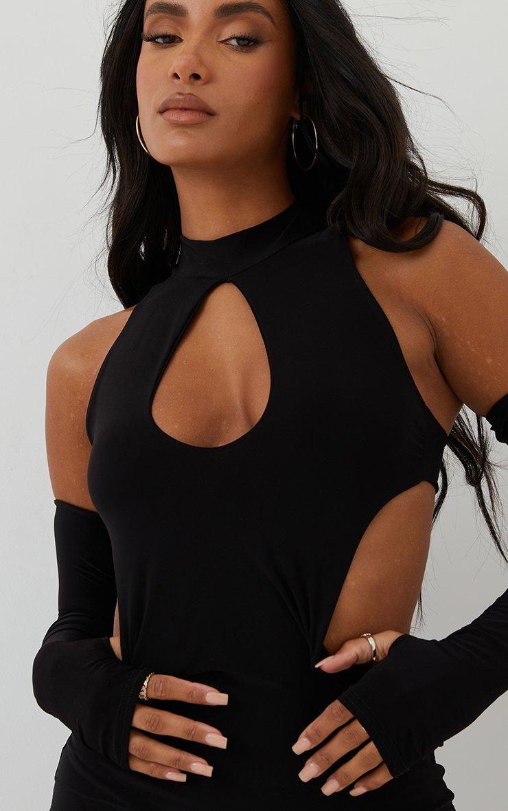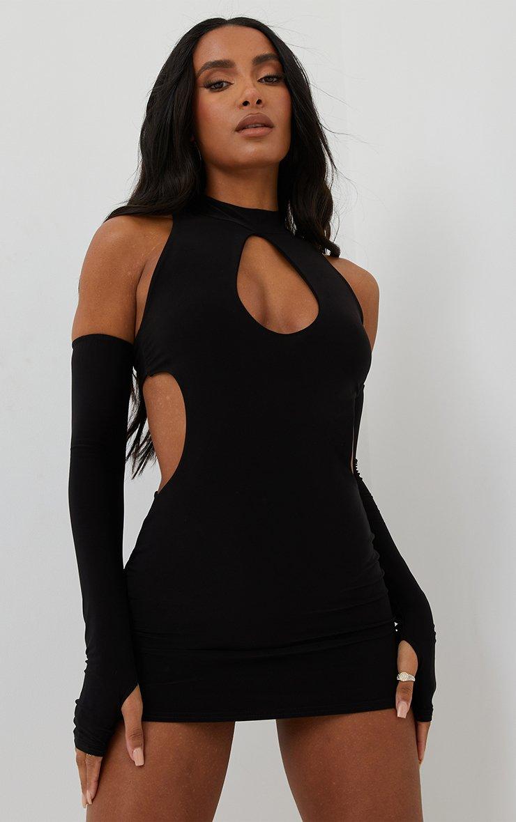 Key Hole Cut Out Mini Bodycon Dress With Sleeves In Black