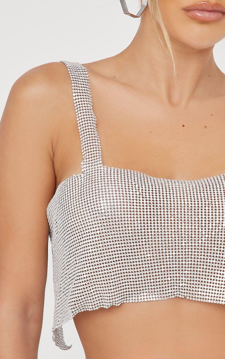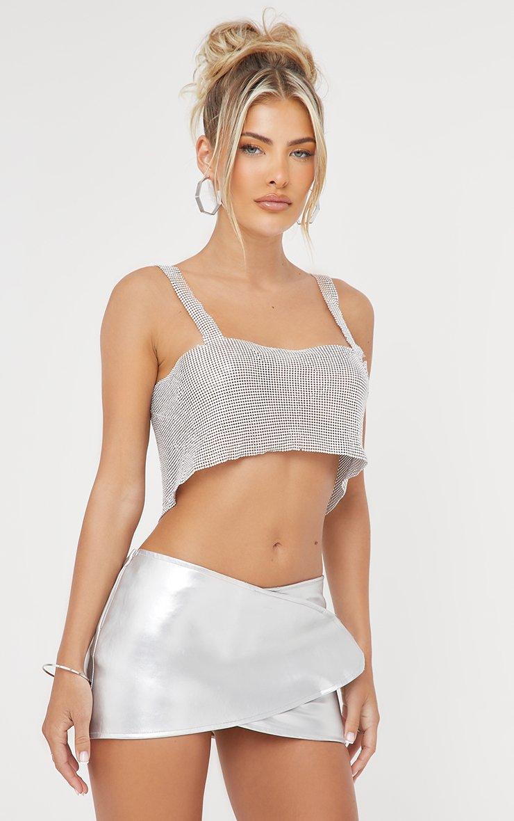 Level up your going-out look with this statement top doll. Featuring a silver chain mail material, with tie back detailing, a square neck and a cropped length. Please note: fabric is very delicate, handle with care.