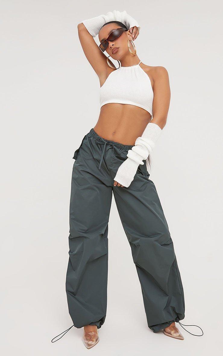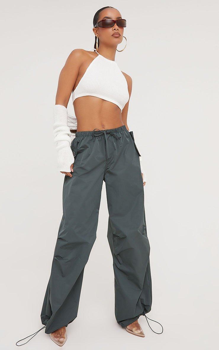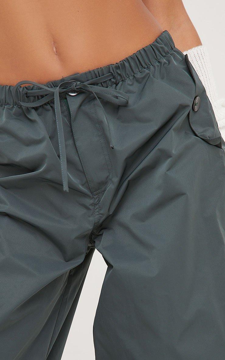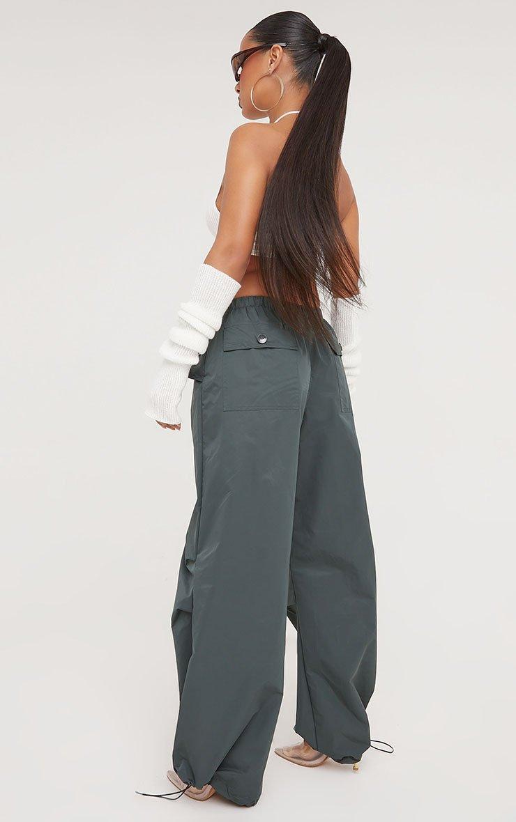 Low Rise Oversized Parachute Cargo Trousers In Dark Green