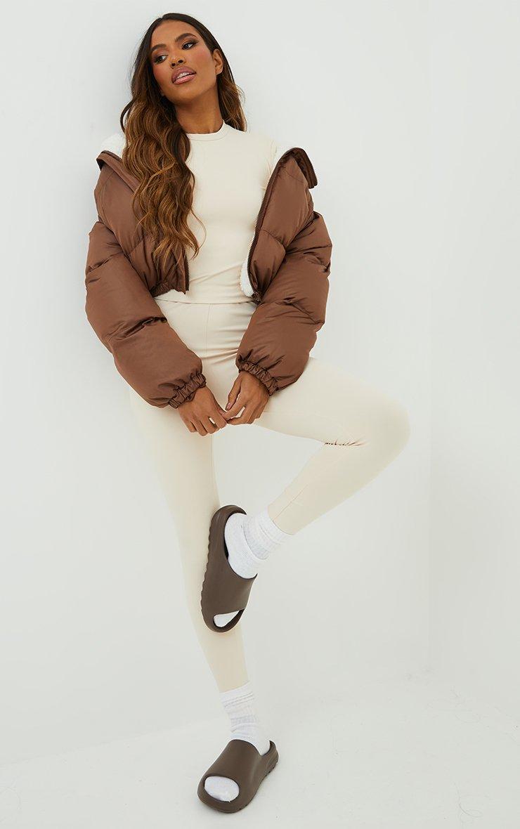 You can't go wrong with a pair of leggings doll and we are loving these. Featuring a cream stretch material, a high waist and a comfy fit. Team these with the matching top and slides for an insta worthy look.