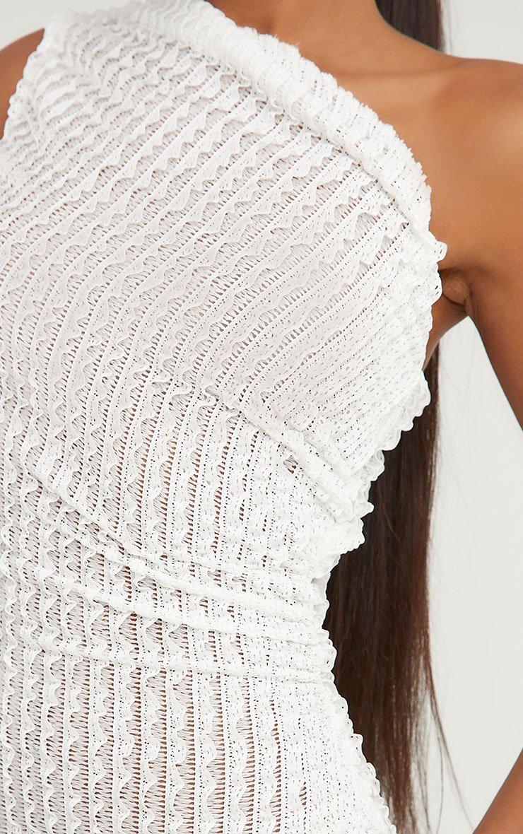 One Shoulder Asymmetric Midi Dress In White Shirred
