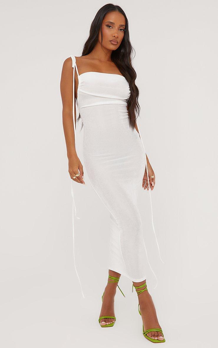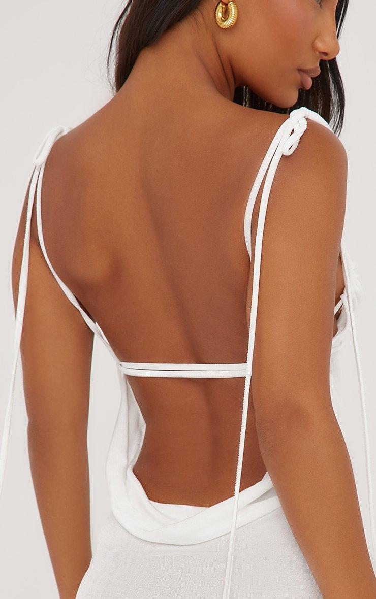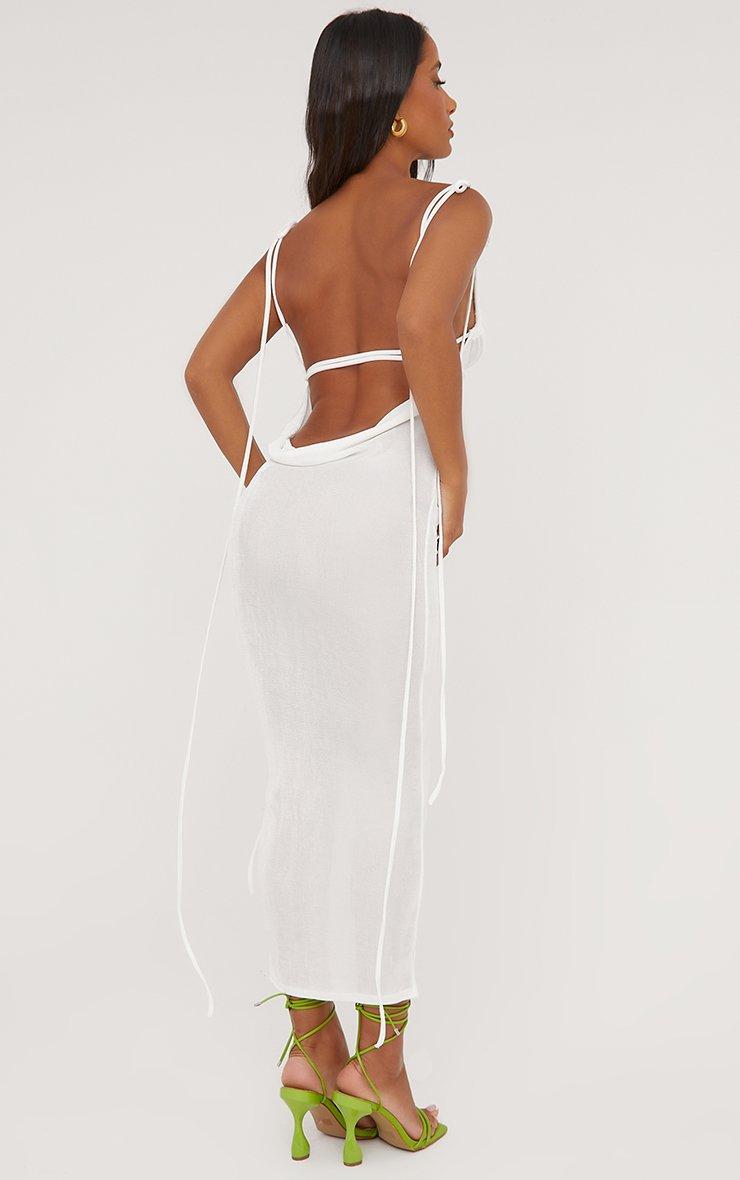Halterneck Tie Detail Backless Maxi Dress In Cream Slinky