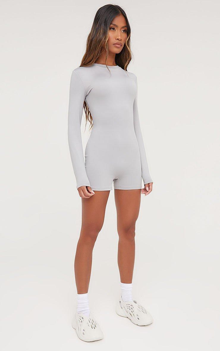 Hit refresh on your basics with this unitard doll. Featuring a grey material, long sleeves and a fitted design. Team this with some slides for a model off duty vibe we love.