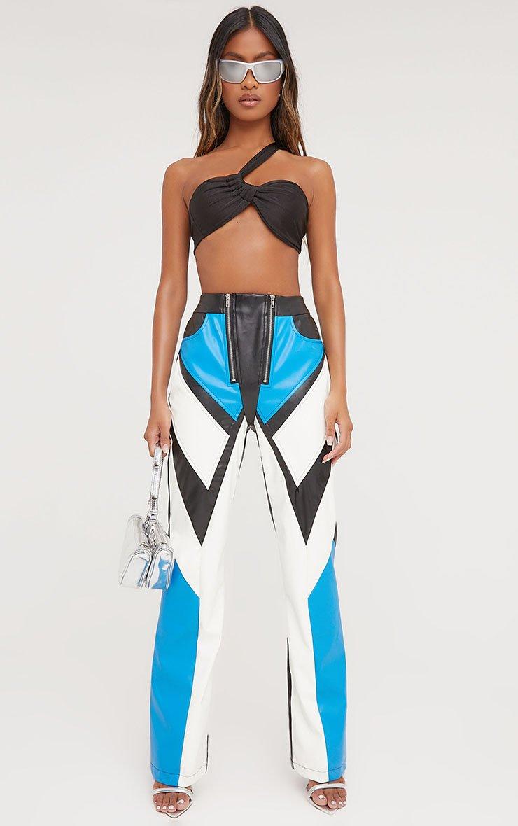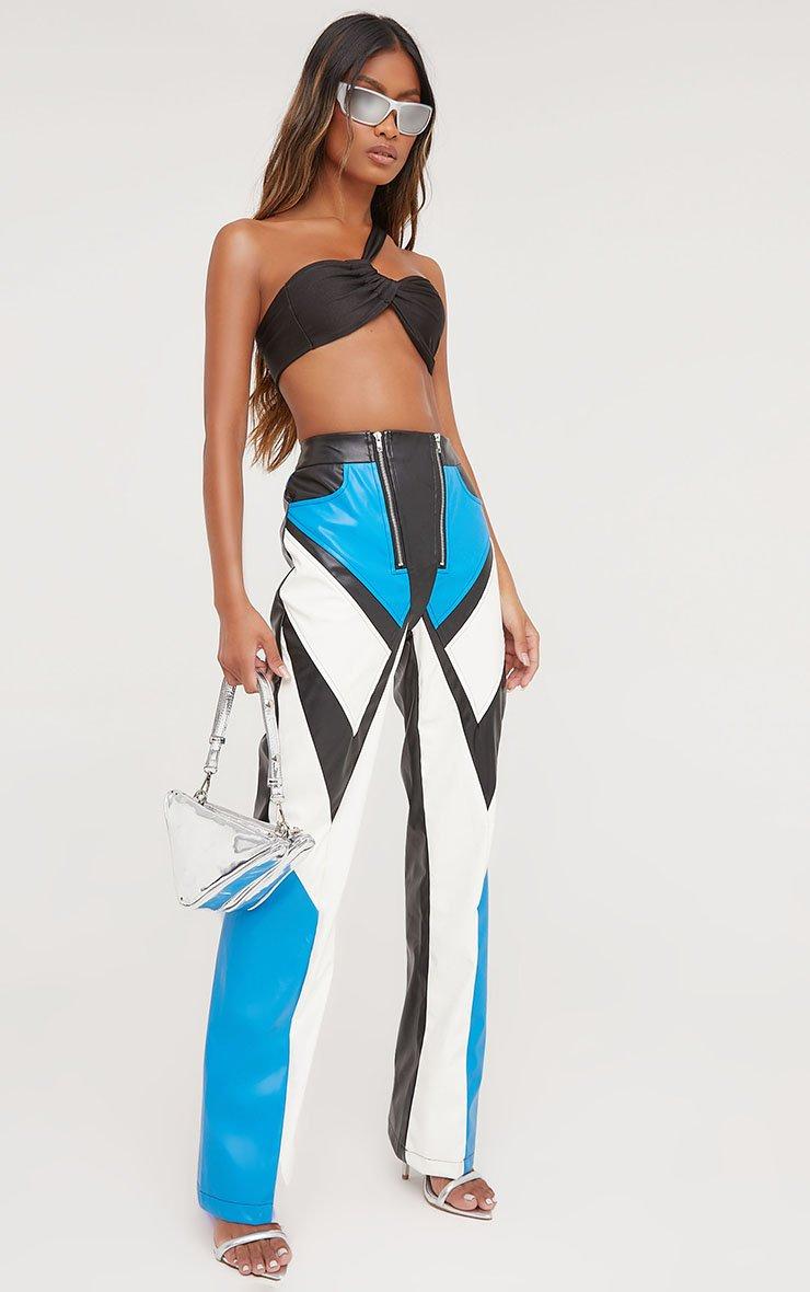 Keep with this trends this season with these trousers doll. Featuring a blue multi faux leather material, motocross detailing, zip detailing and a high waist. Team this with a black crop top and heels for a vibe we love.