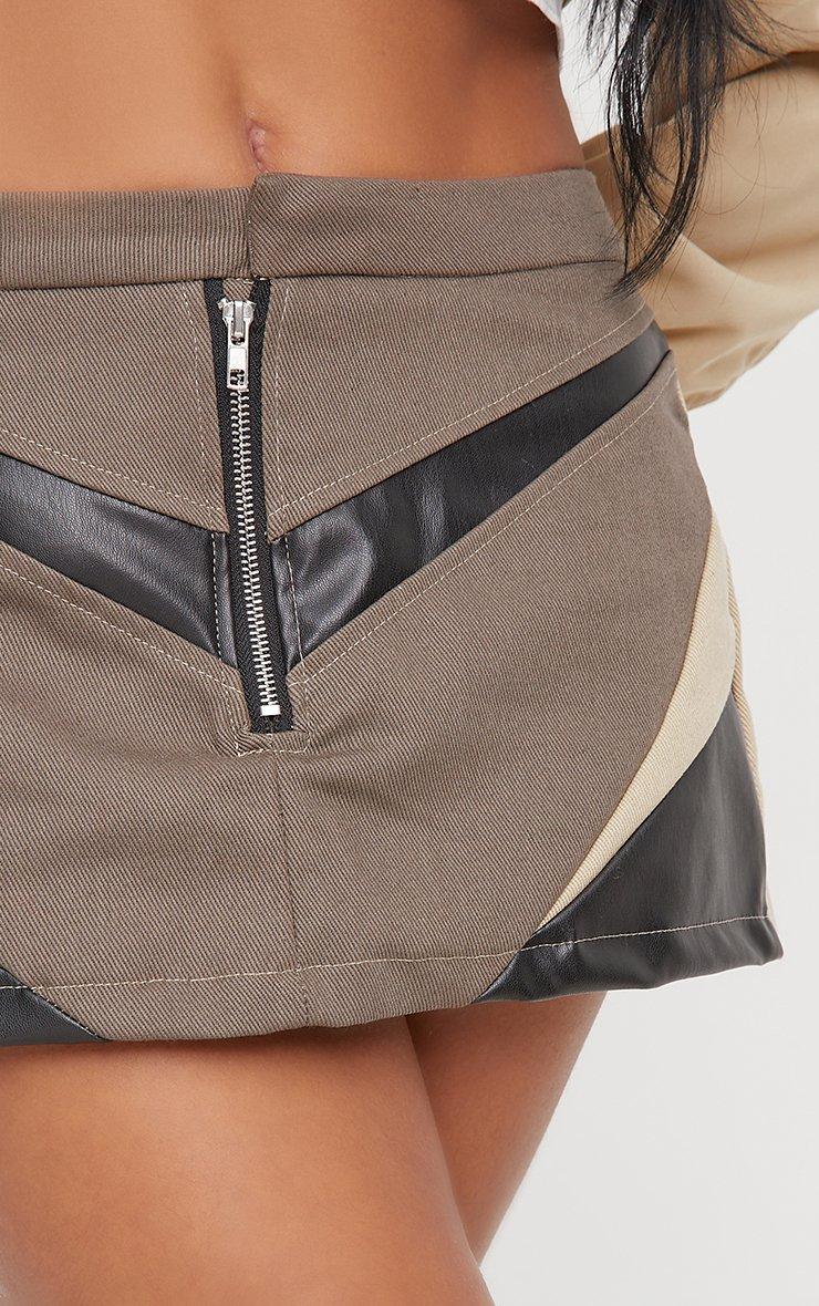 Low Rise Zip Detail Motocross Mini Skirt In Khaki