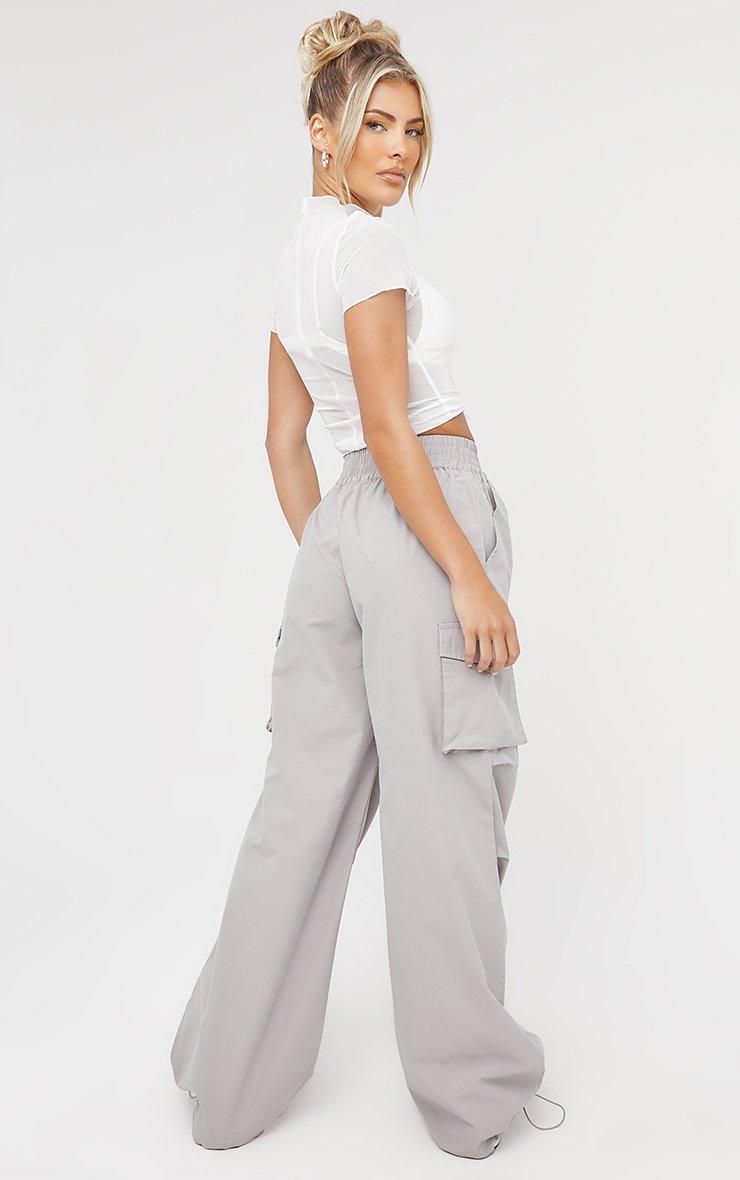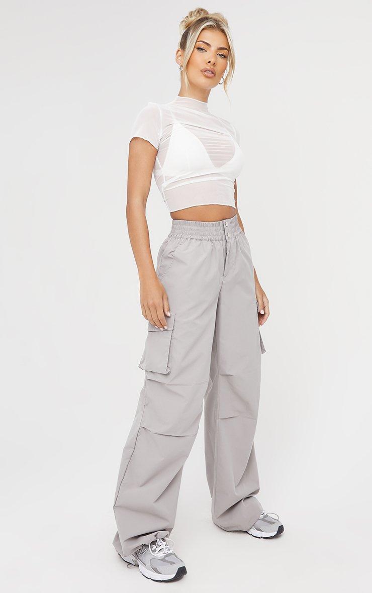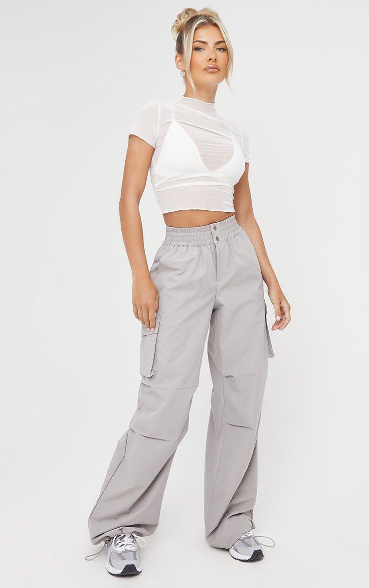 These trousers are everything we're after and more. Featuring a grey material, a high waist, pocket detailing and a cargo style. Team these with a silver bodysuit and heels for a look that's sure to earn you some serious style points.
