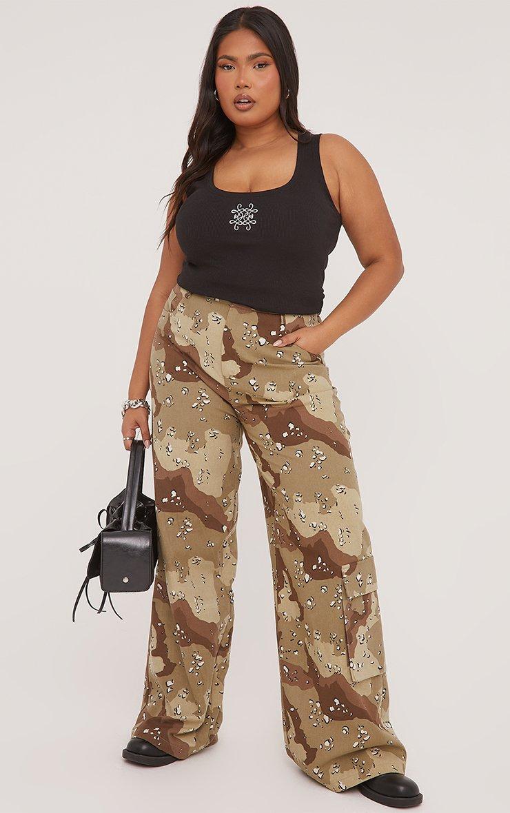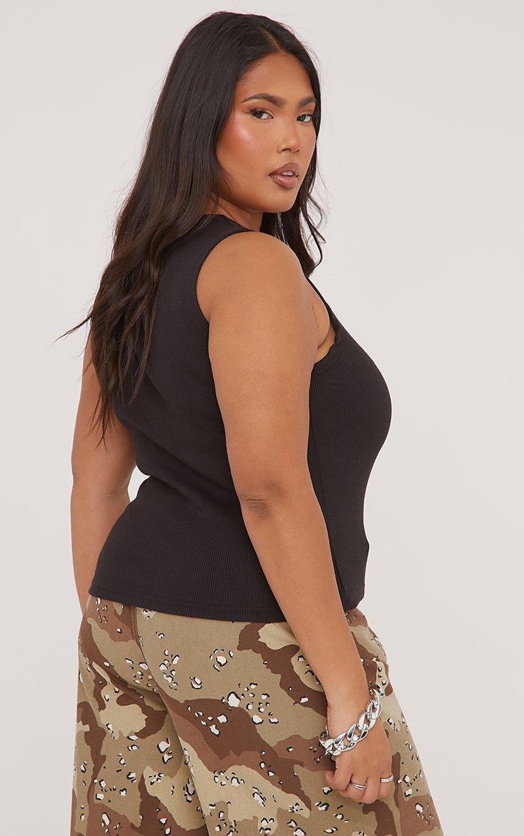 Plus Scoop Neck Swirl Graphic Print Vest In Black Ribbed