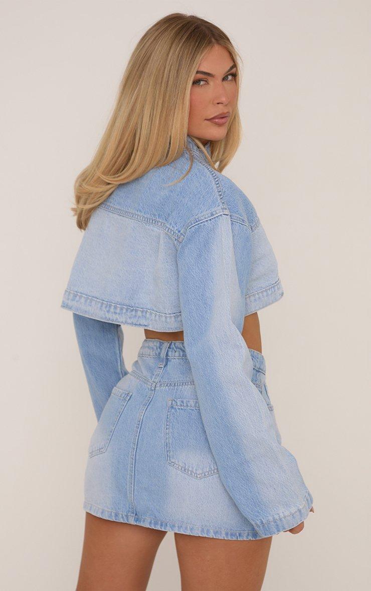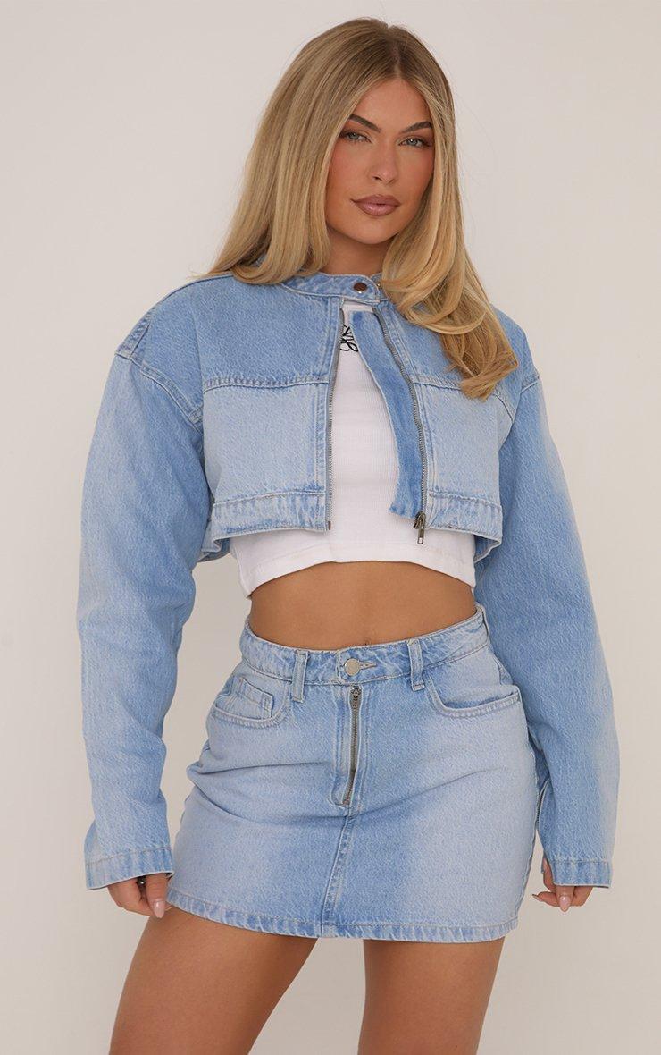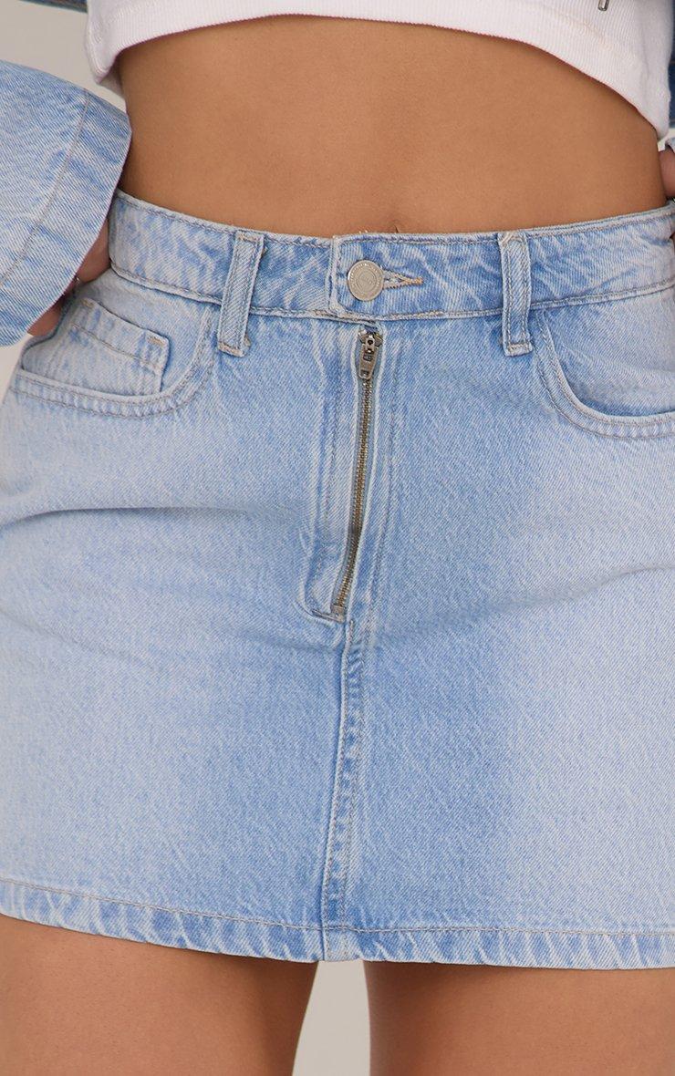High Waist Motocross Detail Mini Skirt In Light Blue Denim