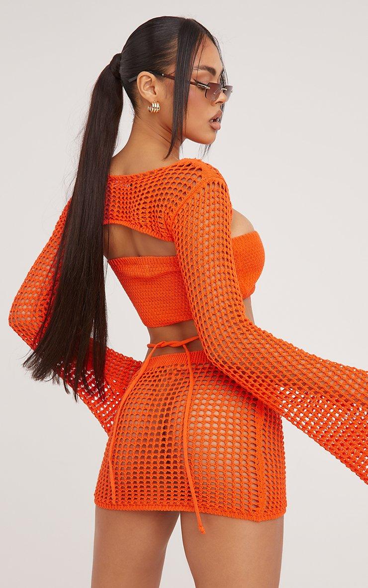 Strap Detail Mini Skirt In Orange Crochet