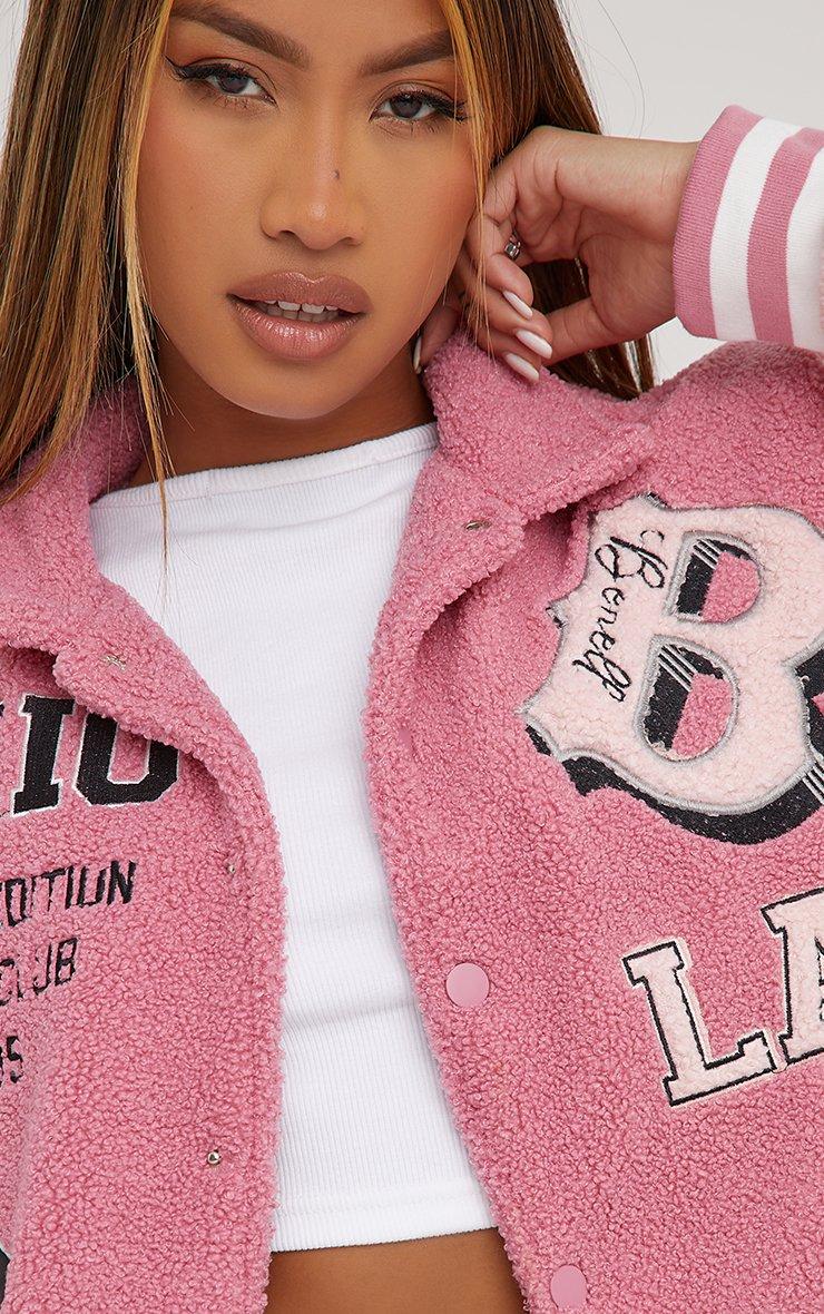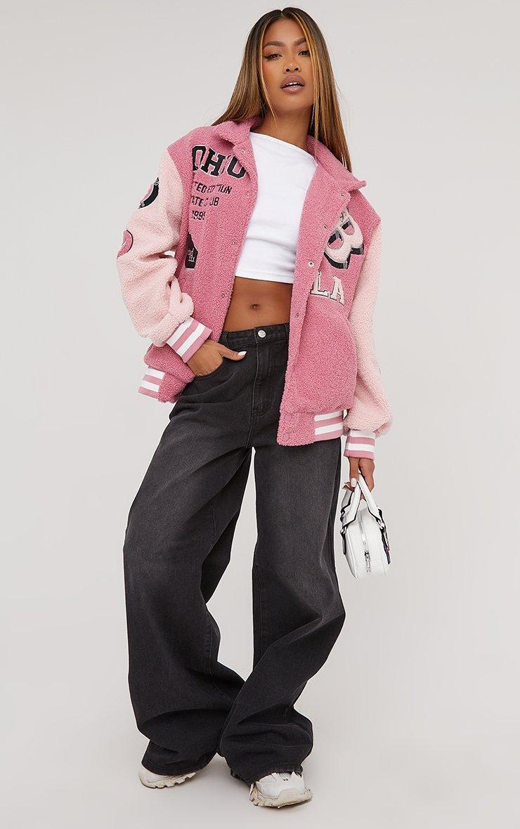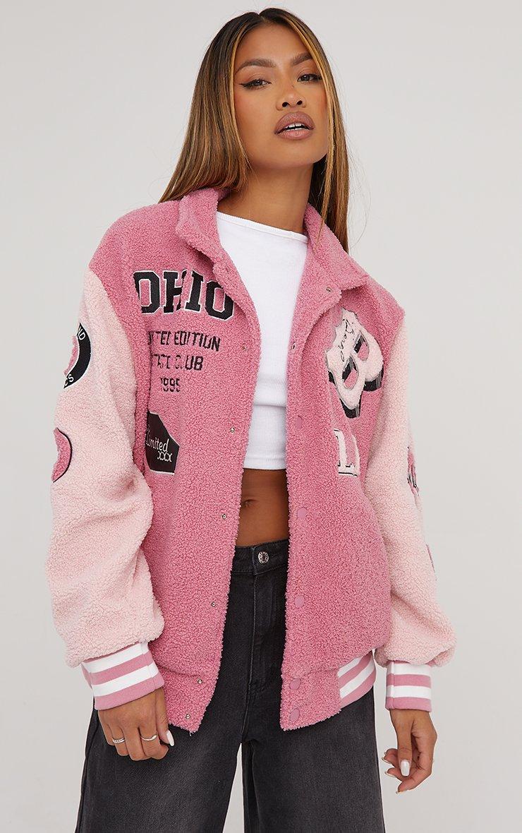 Oversized Bomber Jacket In Contrast Pink Borg