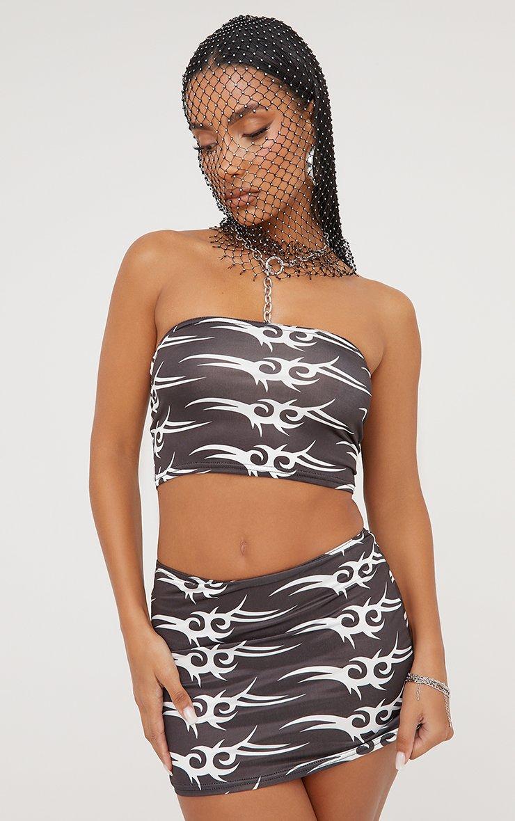 This skirt is sure to earn you some serious style points. Featuring a black material, tribal print detailing and a mini length. Team this with the matching top and boots to complete the look.