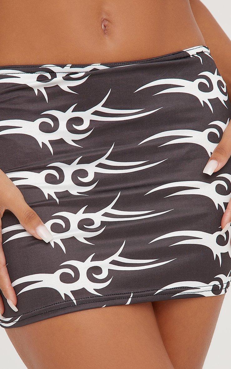 High Waist Tribal Print Detail Mini Bodycon Skirt In Black