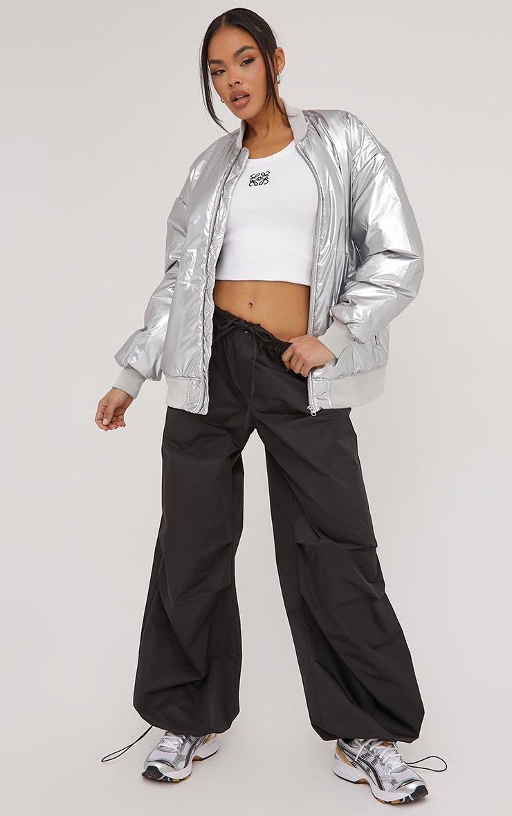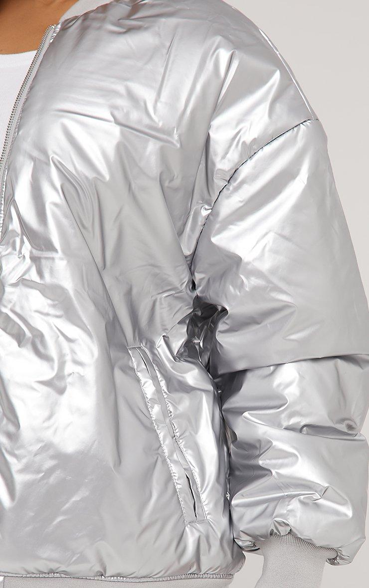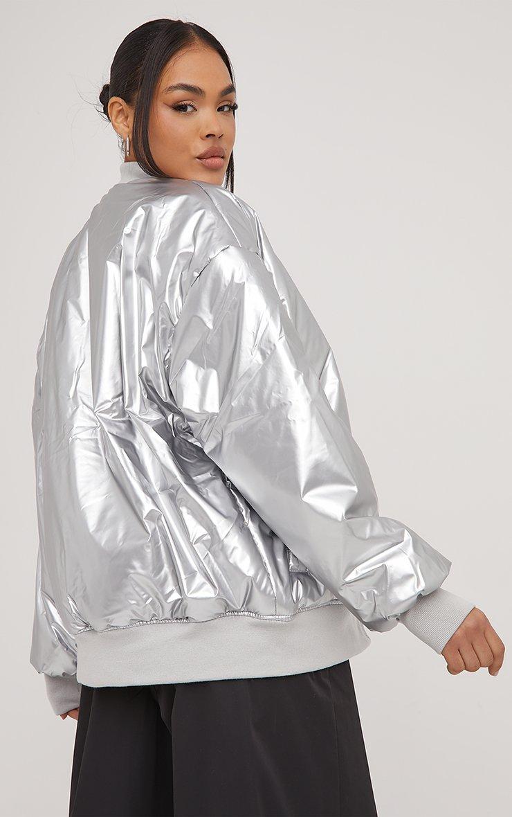 Oversized Bomber Jacket In Silver Metallic Vinyl