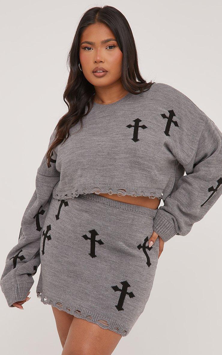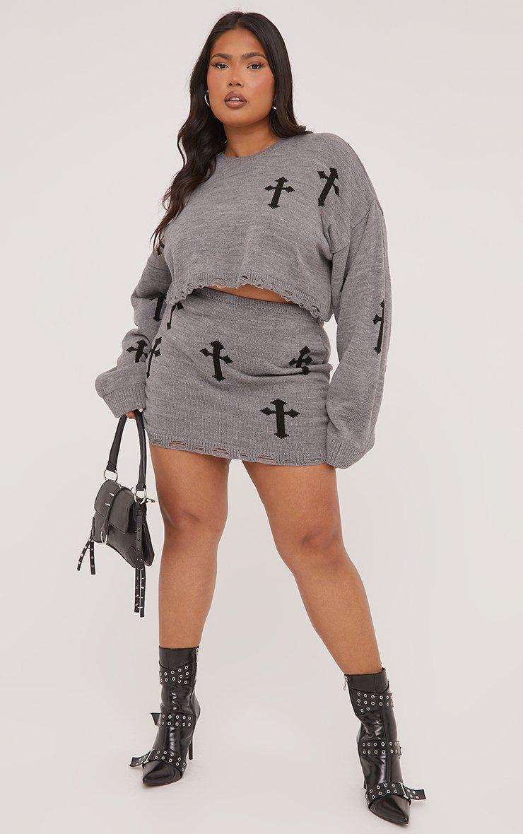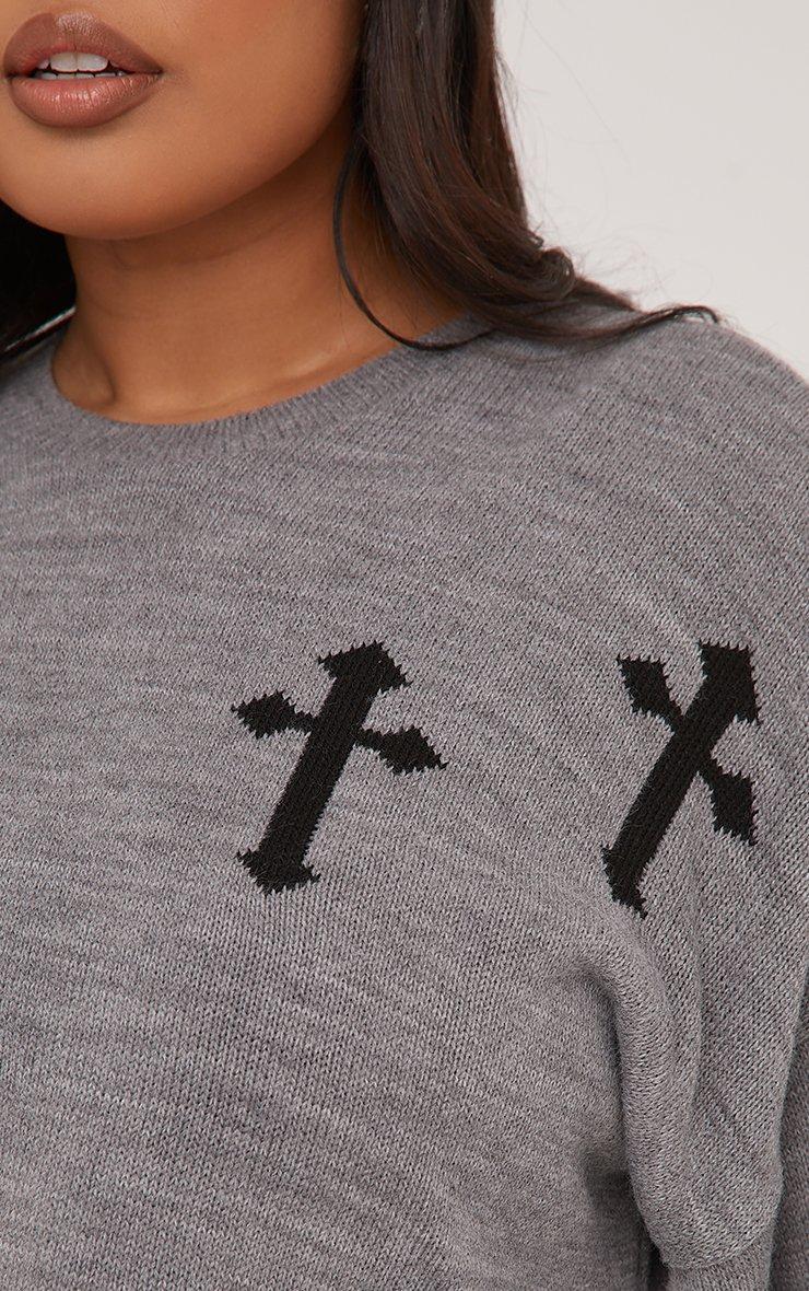 Colour:plus grey crucifix jumper