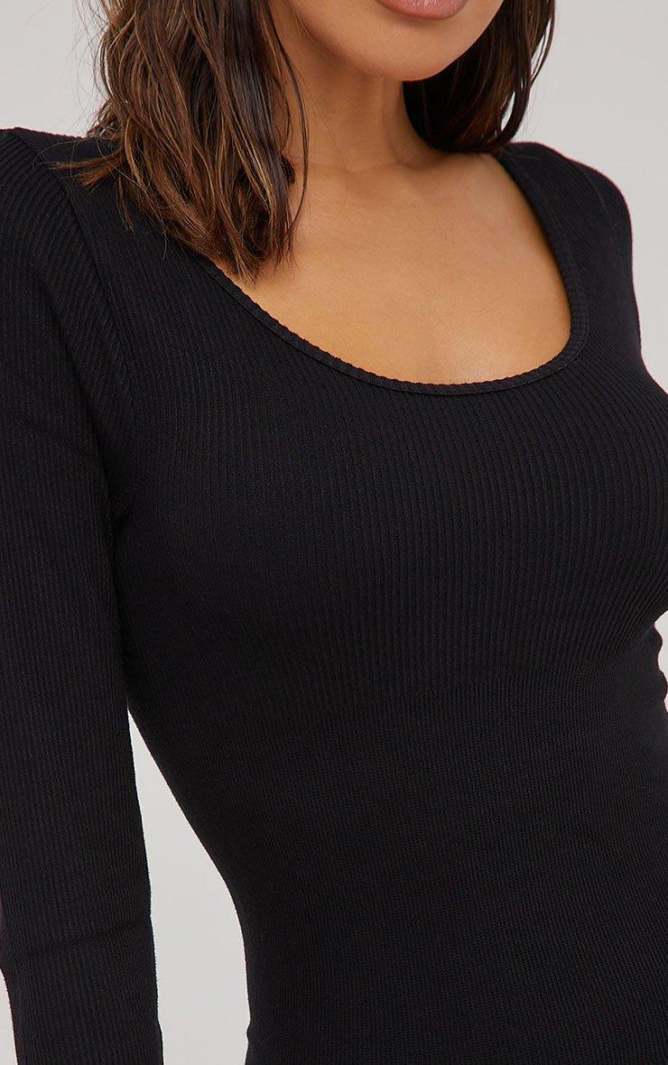 Scoop Neck Long Sleeve Cinch Waist Detail Seamless Jumpsuit In Black