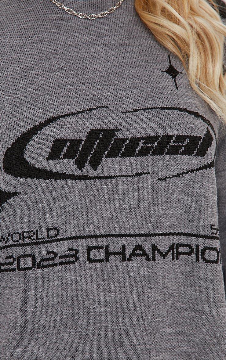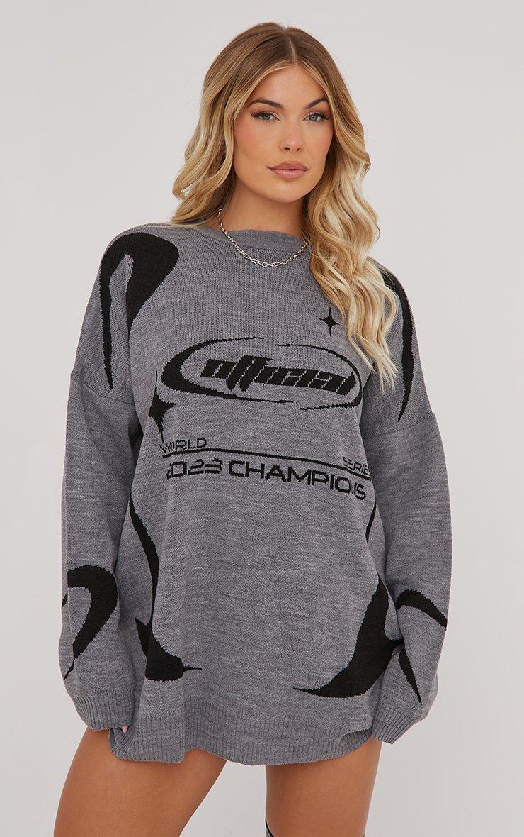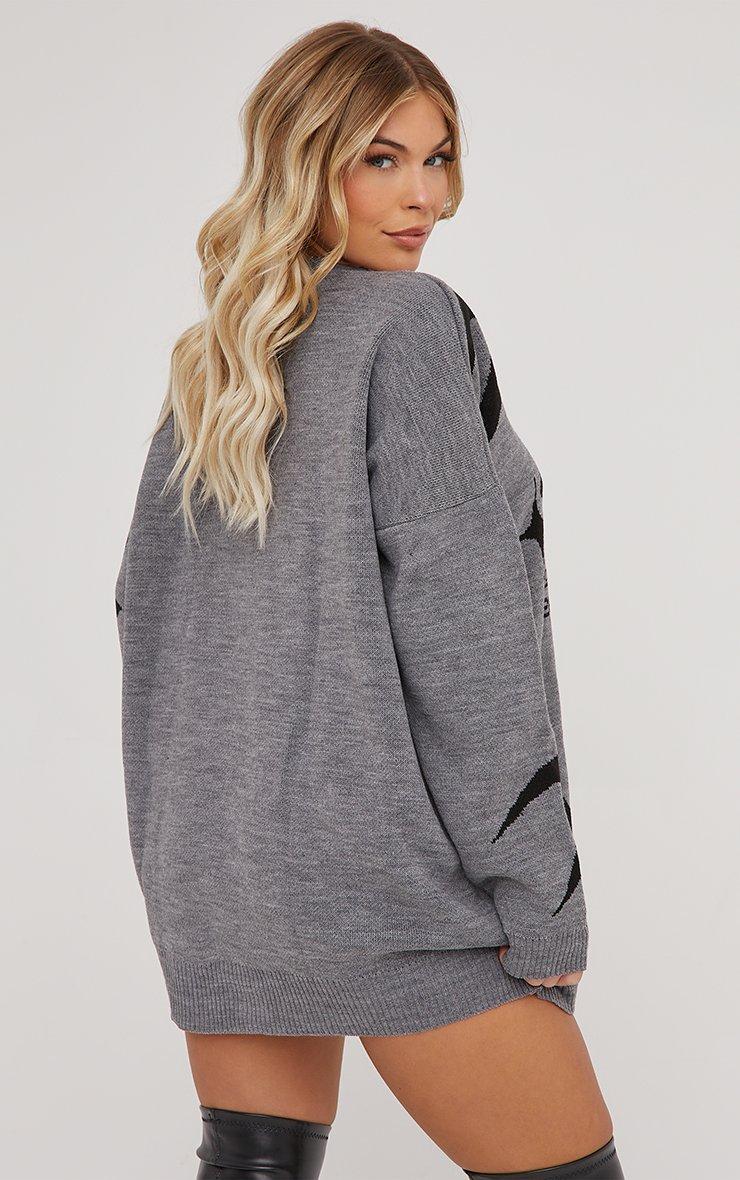Oversized Motocross Detail Jumper Dress In Grey Knit