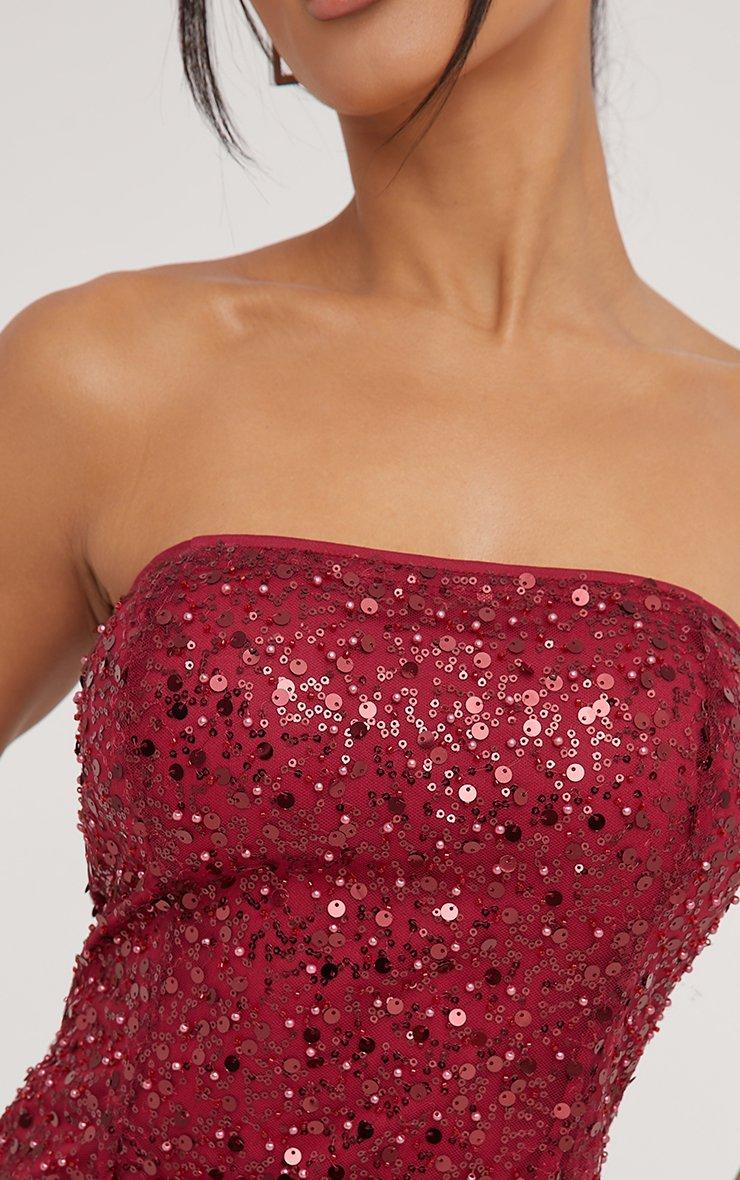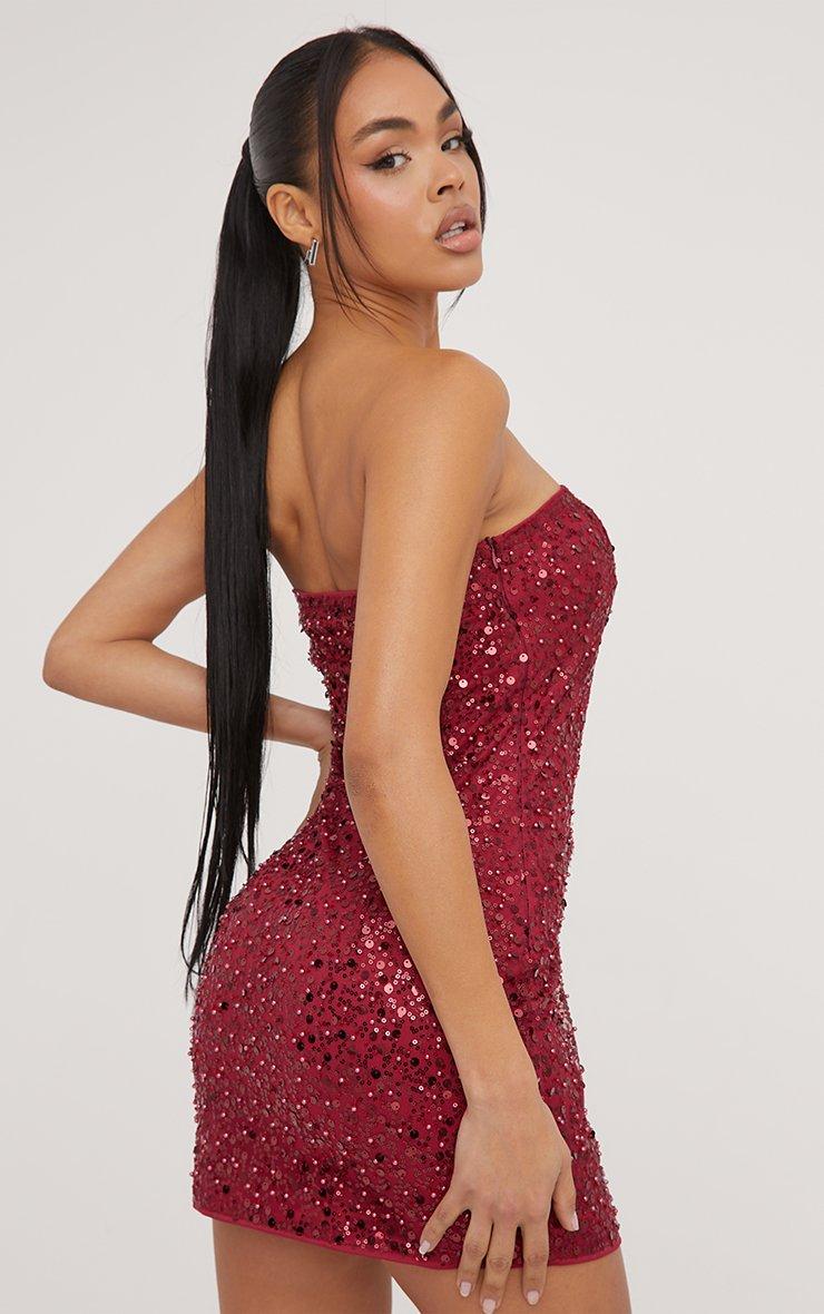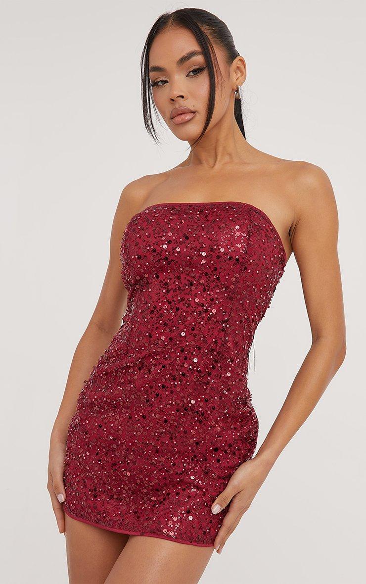 Bandeau Mini Bodycon Dress In Red Sequin