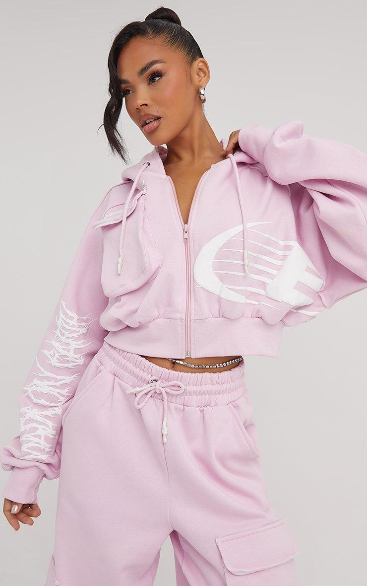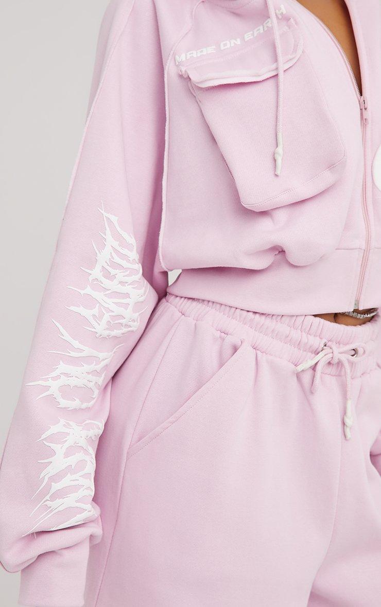 Feel fierce in our Long Sleeve 'Made On Earth' Graphic Slogan Print Cropped Hoodie In Pink. This pink cropped zip up hoodie is your new obsession with its roomy long sleeves, bold pocket details and edgy ‘made on earth’ graphic slogan. Style this cropped hoodie with the matching joggers for an iconic look!