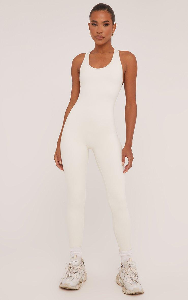 Elevate your basics with this jumpsuit. Featuring a cream sculpt material, a scoop neck, an open back and a bow detail.