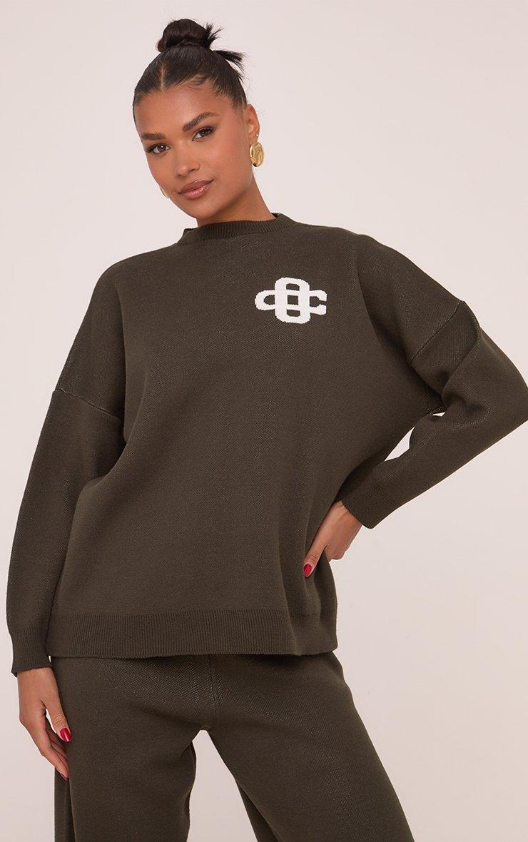 Perfect for off-duty or casual vibes, doll. Featuring khaki knit material with high neck, oversized fit and contrast swirl detailing, this sweatshirt adds cool, it-girl energy to any outfit. Style with joggers or jeans and trainers for a boss-babe finish.