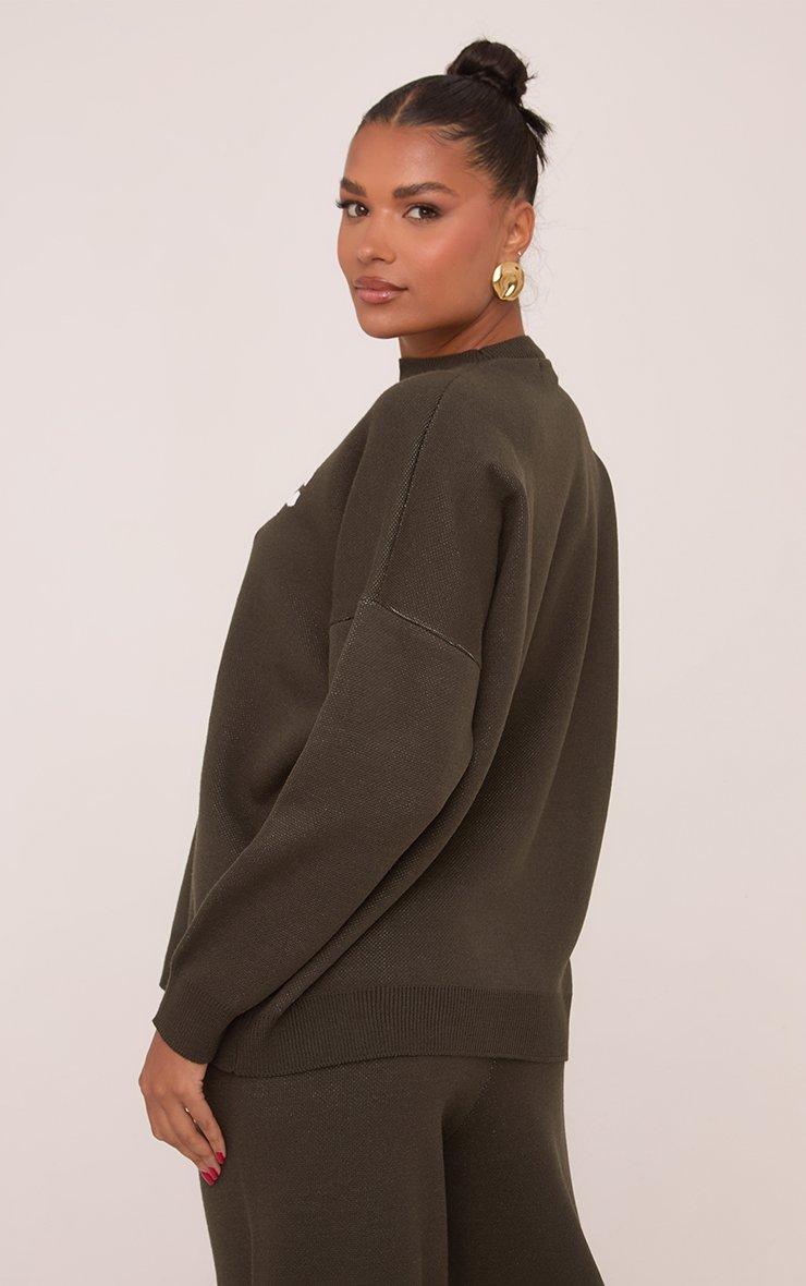 High Neck Oversized Contrast Swirl Detail Sweatshirt In Khaki Knit