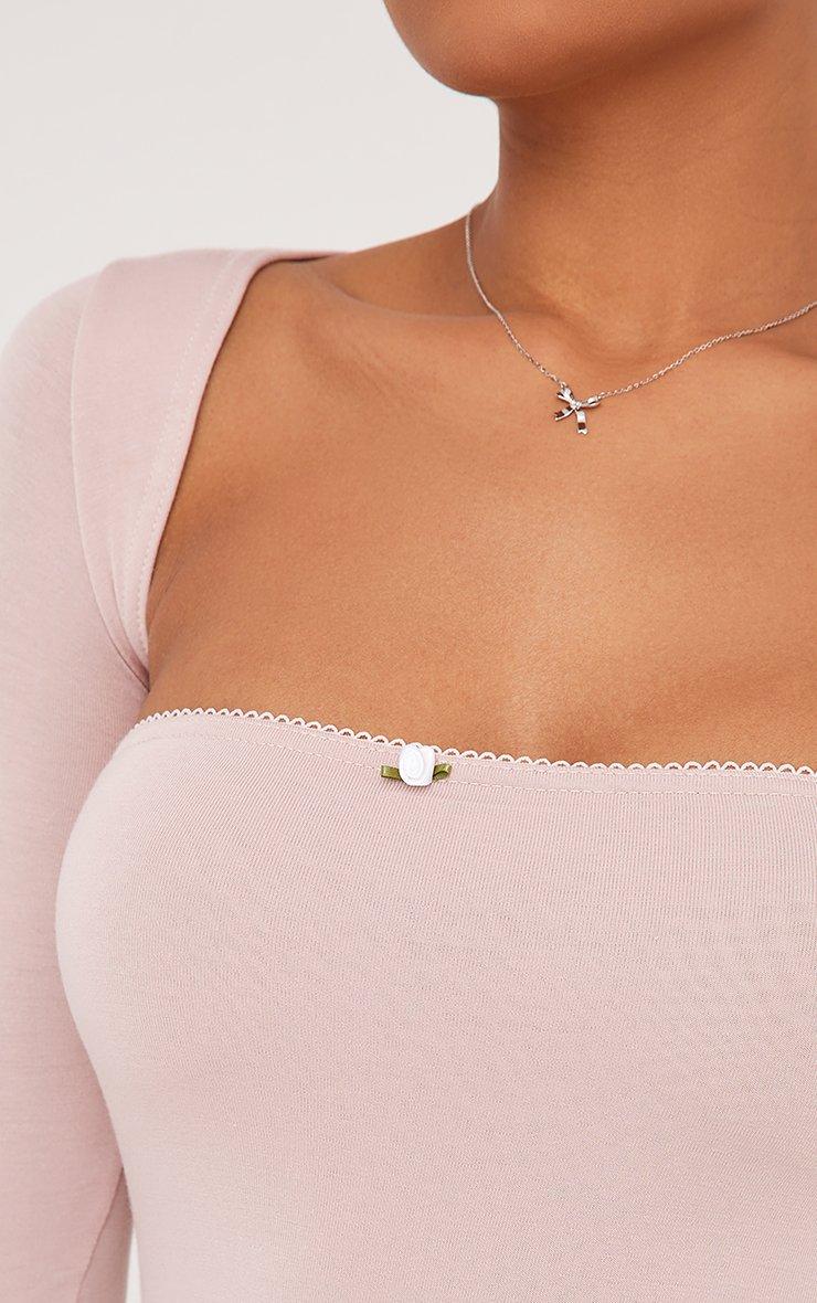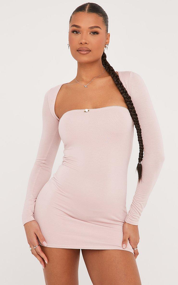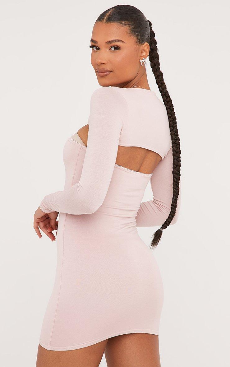 Bandeau Rose Detail Mini Bodycon Dress With Bolero Sleeves In Dusky Pink