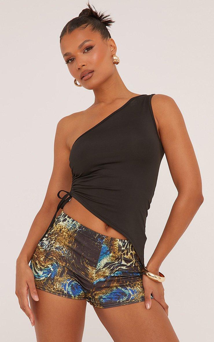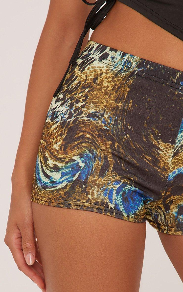 Add some colour to your new season look with these shorts. Featuring a blue leopard print material, a mid rise and a hotpants style.